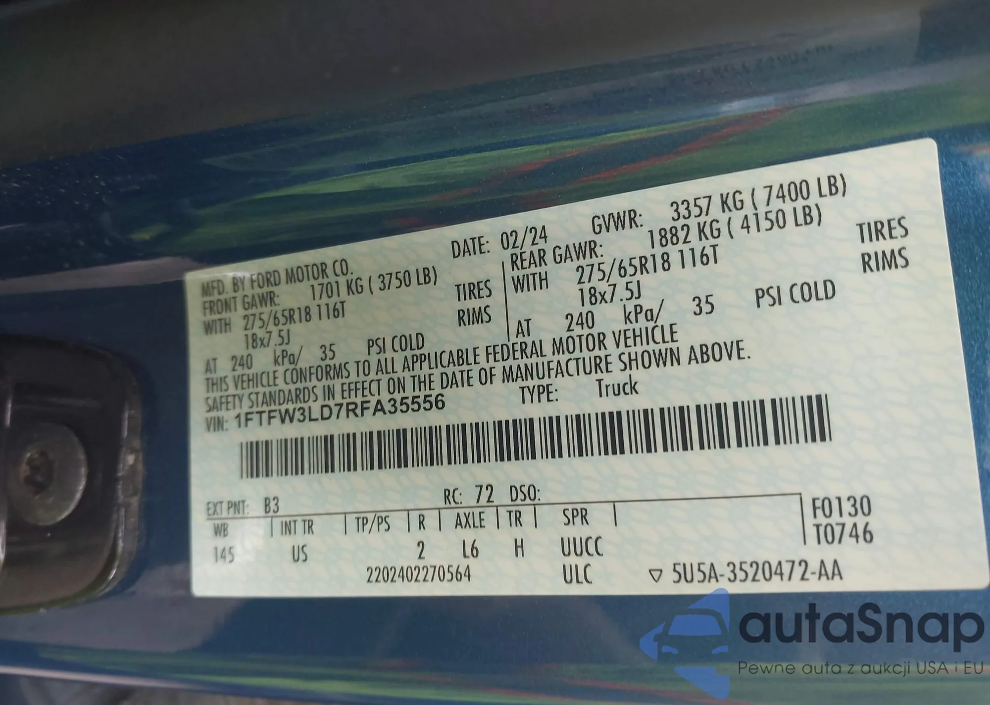 VIN: 1FTFW3LD7RFA35556