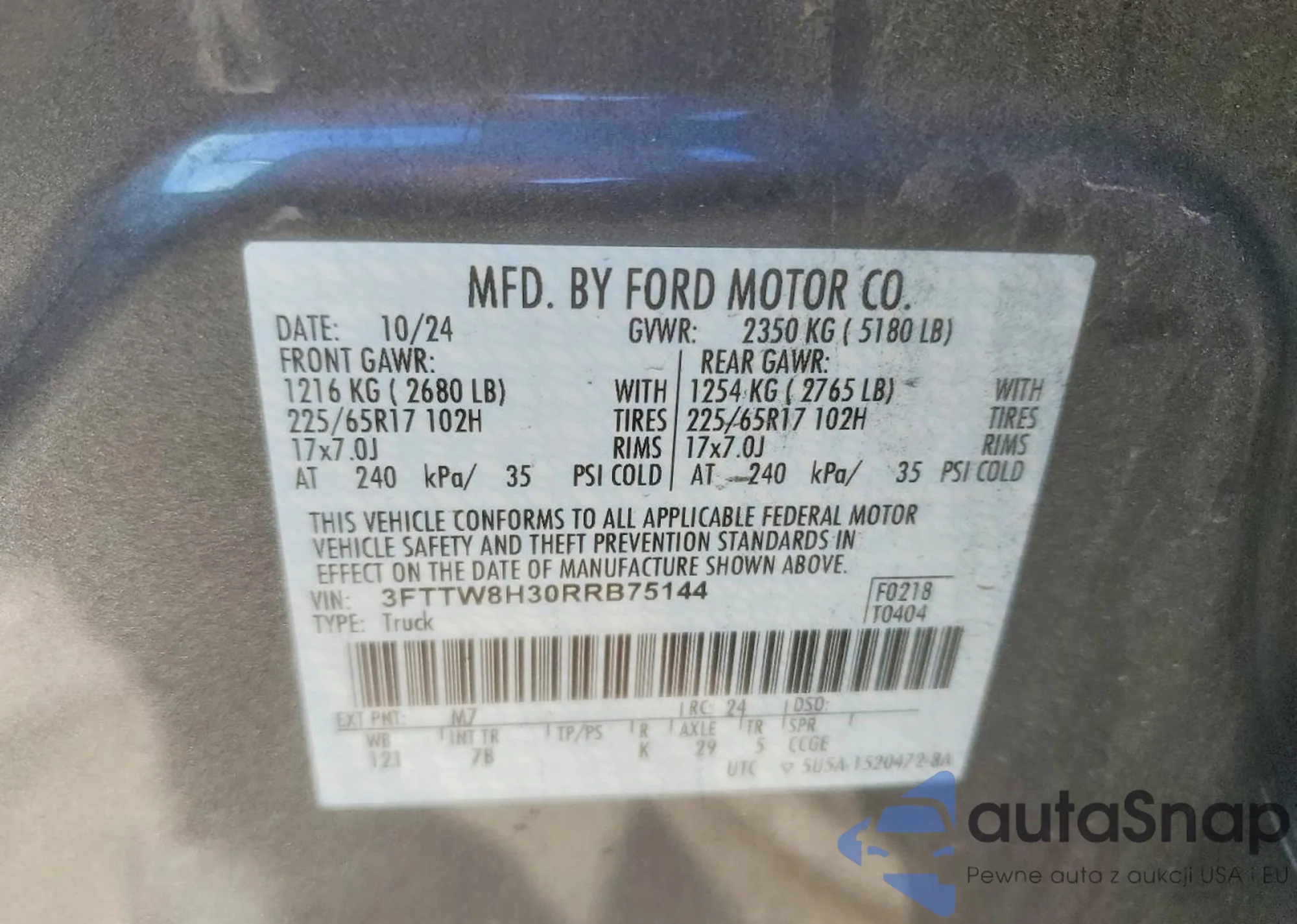 The car Ford Maverick 2024 (VIN 3FTTW8H30RRB75144) is sold by an unverified seller. We recommend checking the Carfax report and confirming registration possibilities before purchase.
