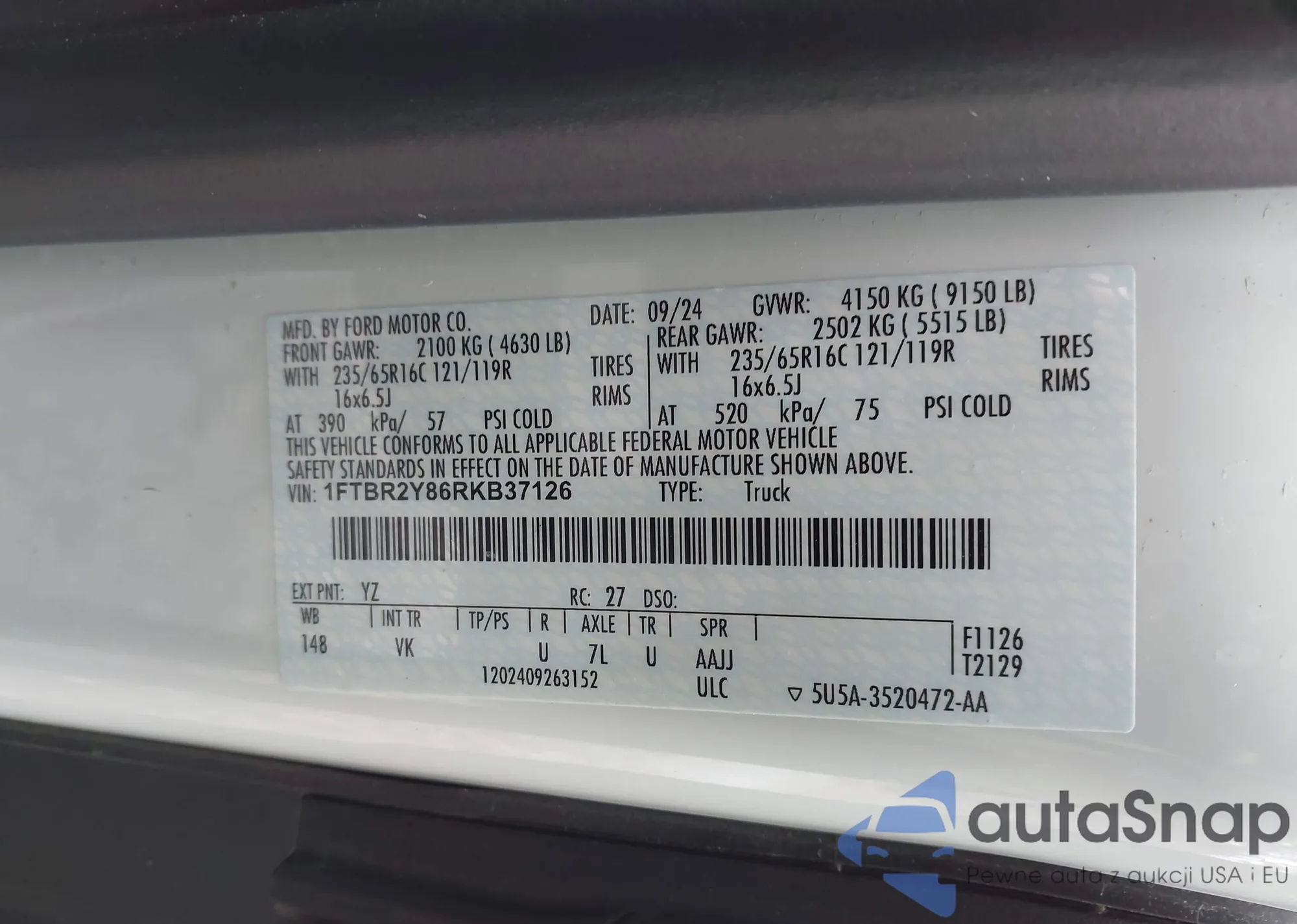 VIN: 1FTBR2Y86RKB37126