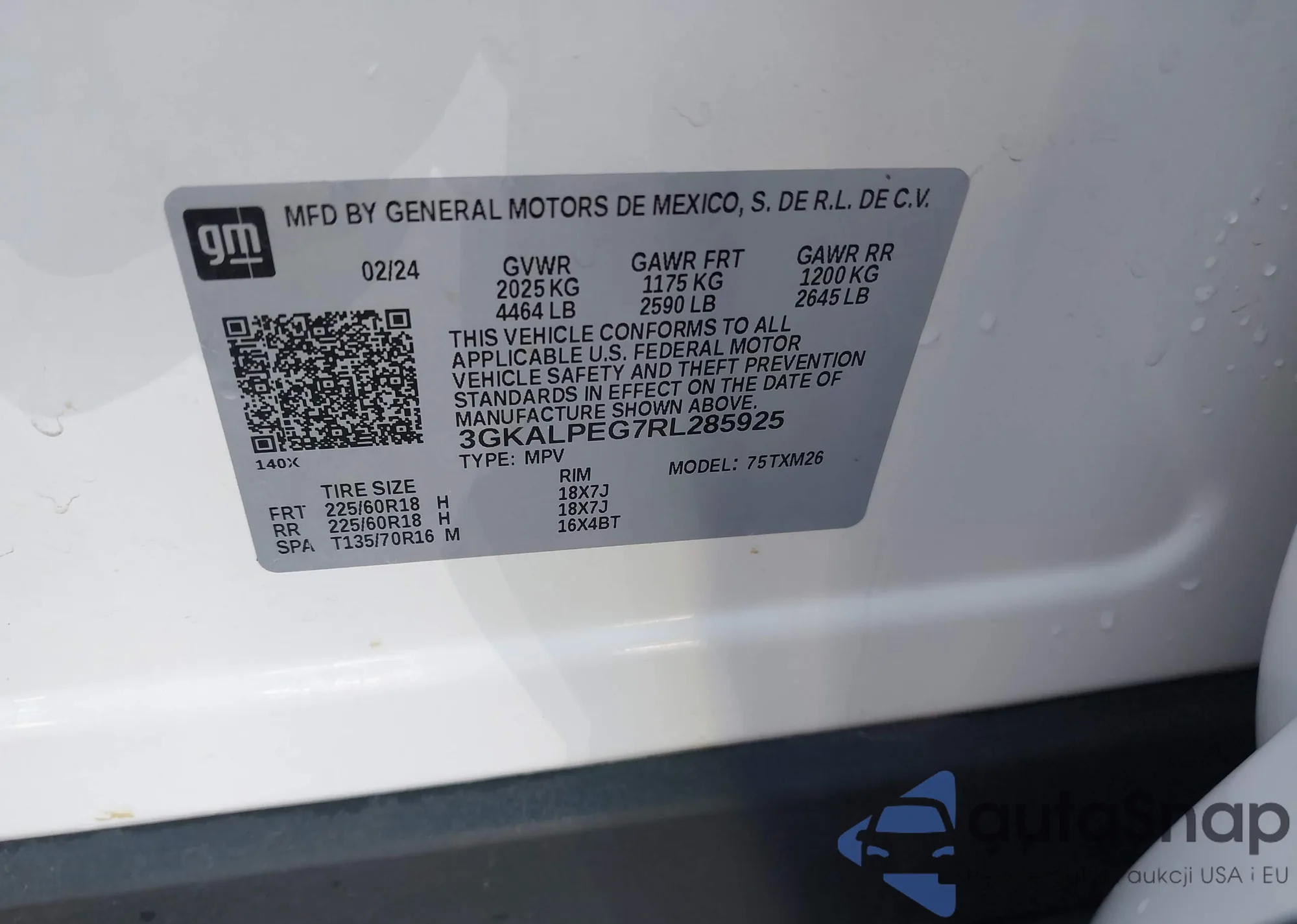 VIN: 3GKALPEG7RL285925