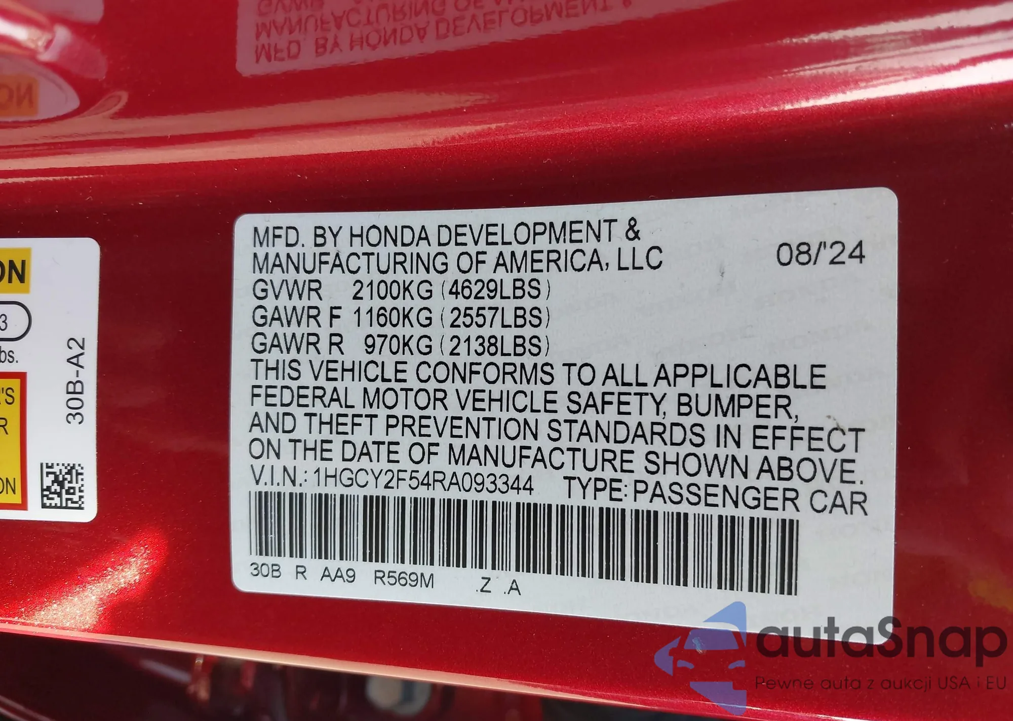 VIN: 1HGCY2F54RA093344