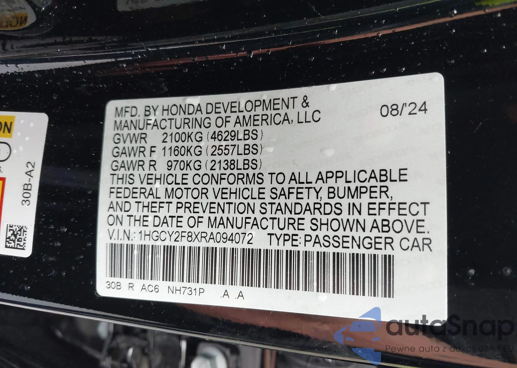 VIN: 1HGCY2F8XRA094072
