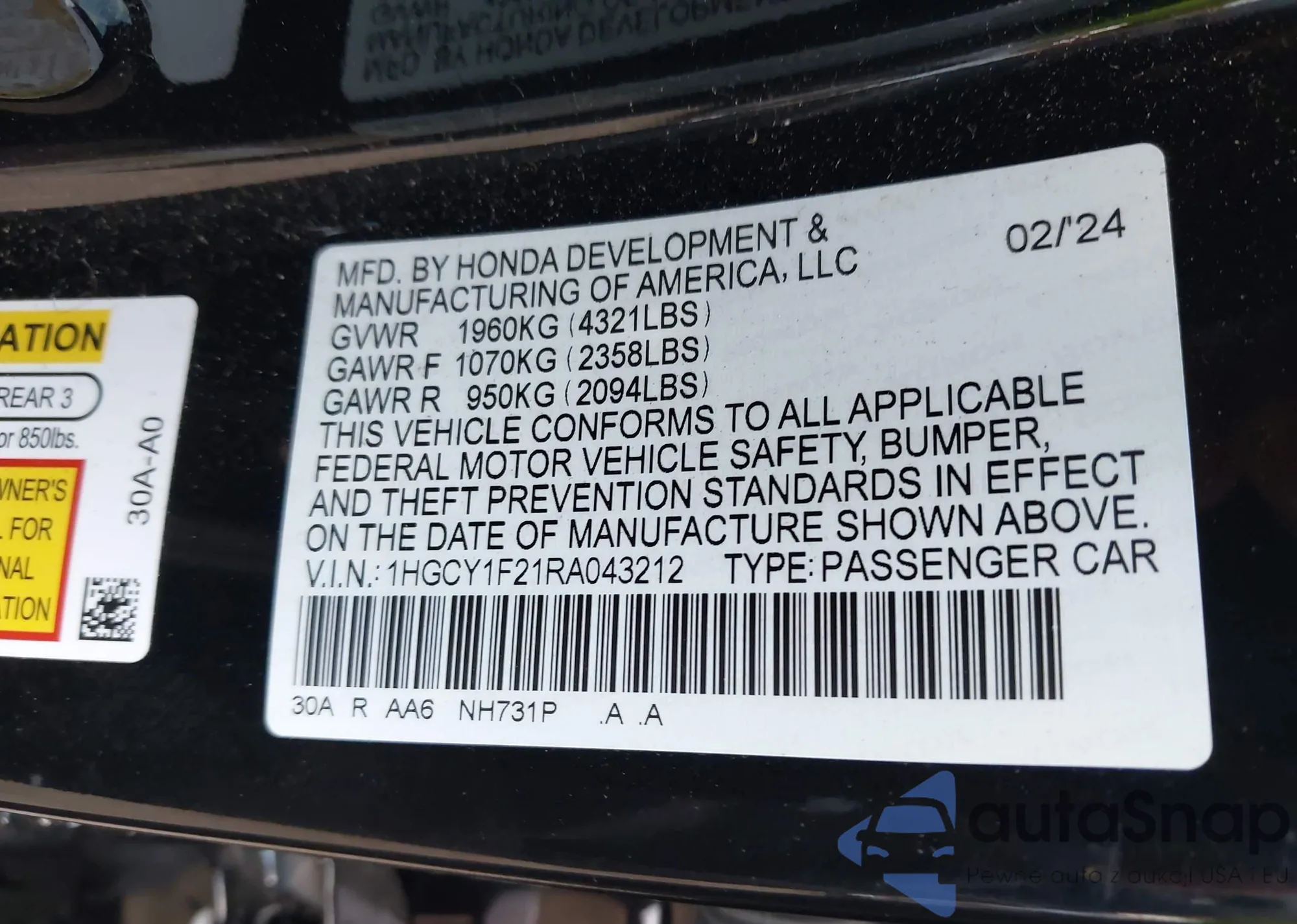 VIN: 1HGCY1F21RA043212
