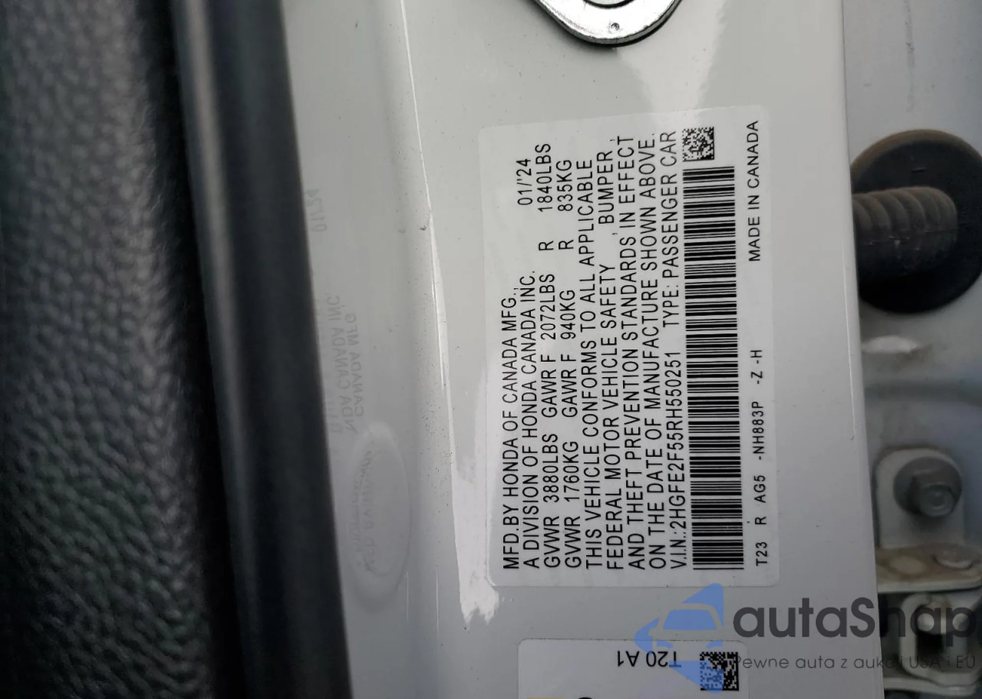Honda Civic 2024 – Vehicle History (Sold at COPART)