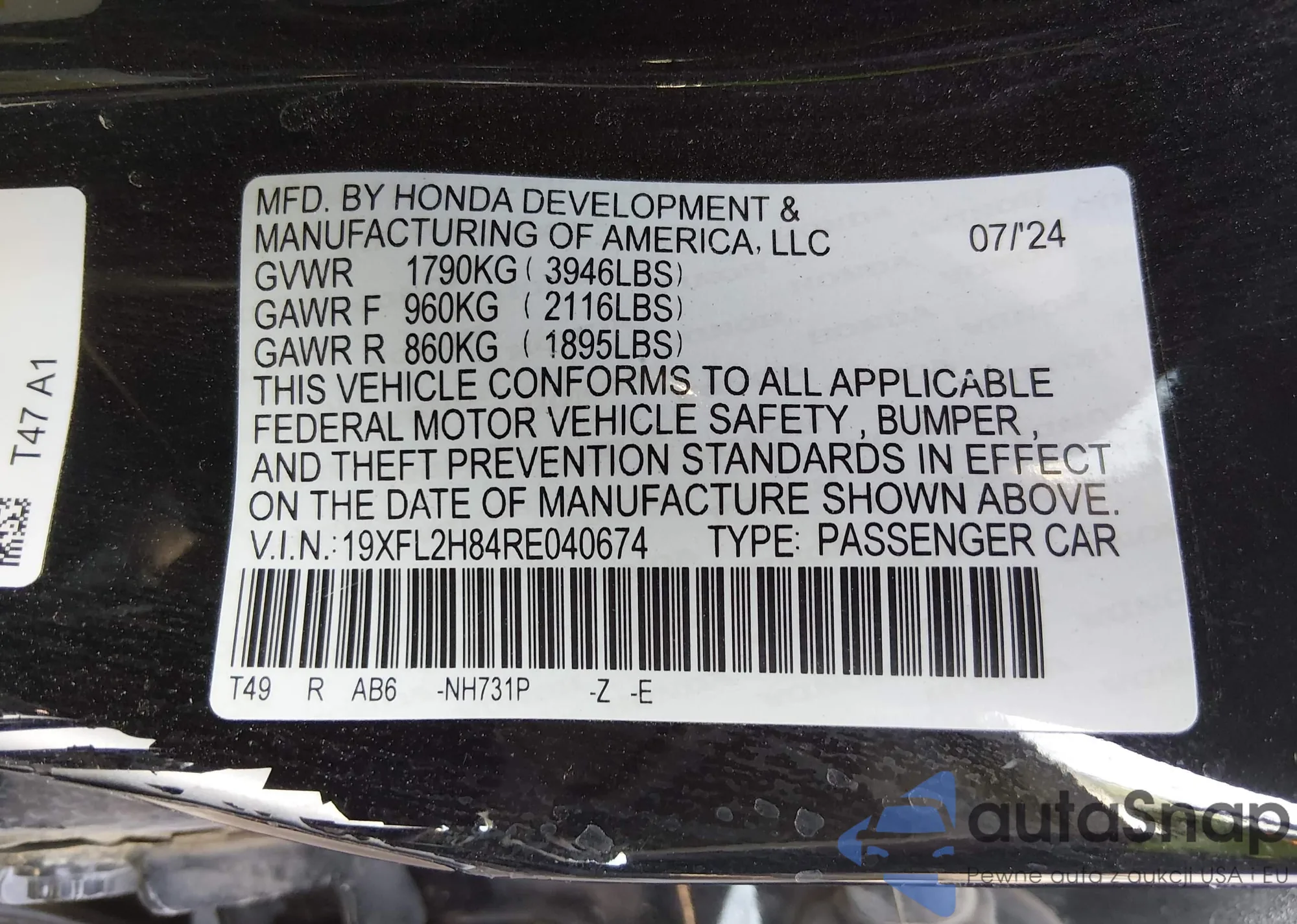 The car Honda Civic 2024 (VIN 19XFL2H84RE040674) has not been auctioned before. The documents are clean, and the mileage matches or is below the market average. Sold by an insurance company – we recommend purchase. Delivery to the port will take approx. 6–8 weeks.