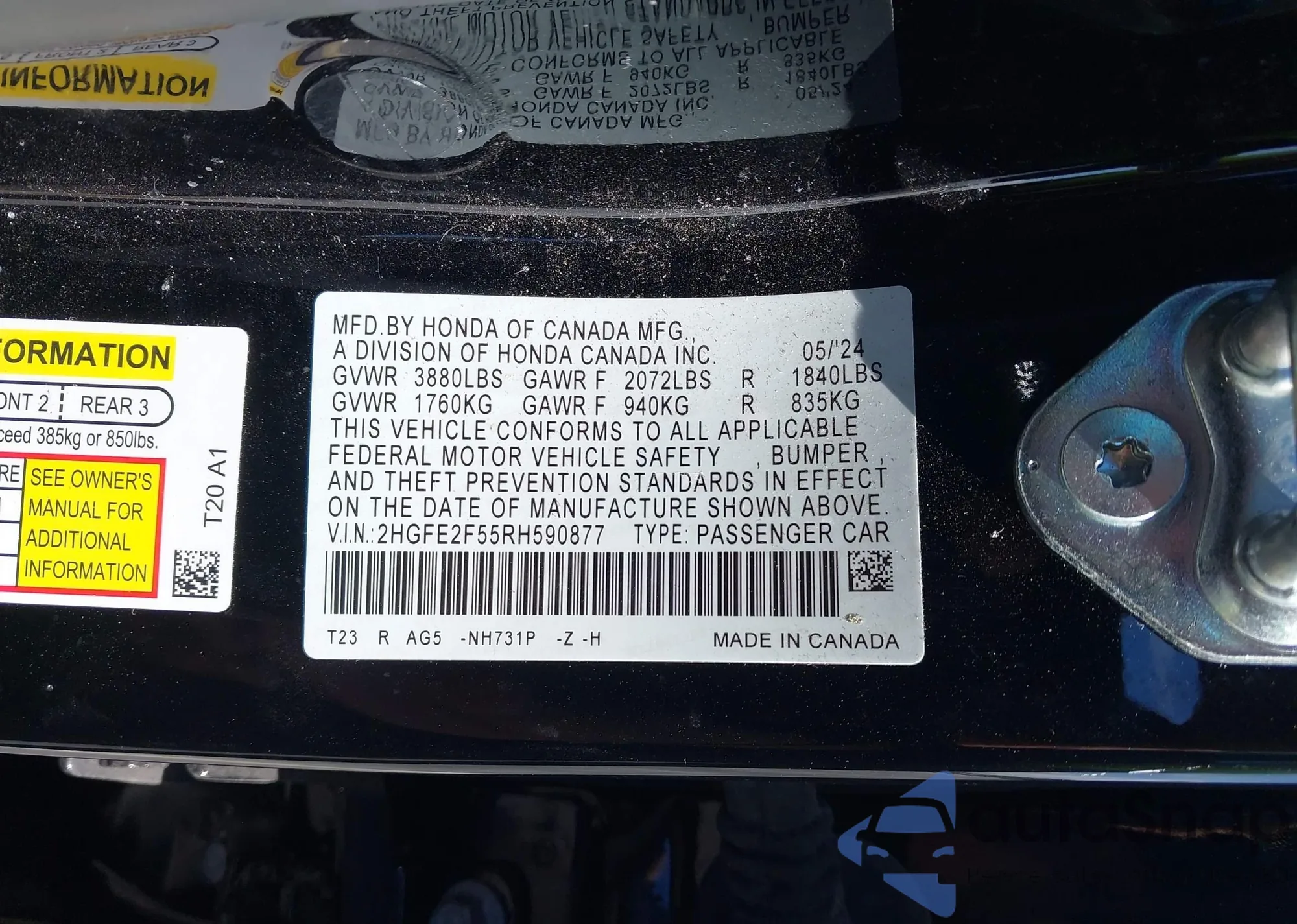 The car Honda Civic 2024 (VIN 2HGFE2F55RH590877) has already been auctioned 1 times and/or is sold by an unverified seller. We recommend checking the Carfax report and confirming registration possibilities before purchase.