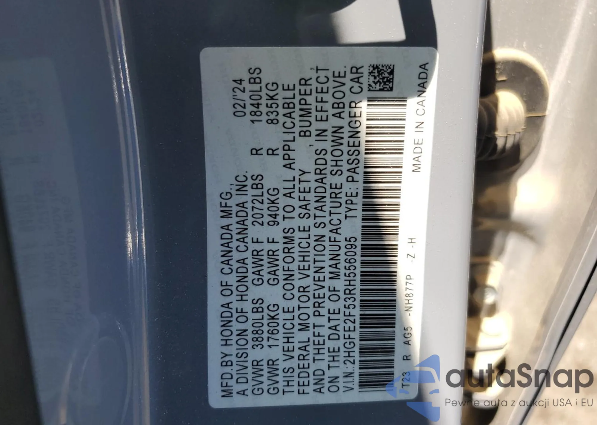 VIN: 2HGFE2F53RH556095