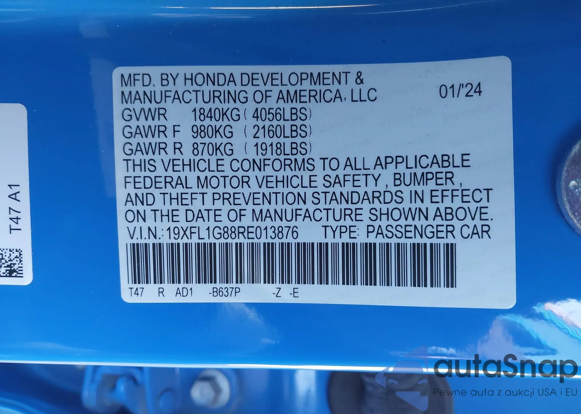 The car Honda Civic 2024 (VIN 19XFL1G88RE013876) has not been auctioned before. The documents are clean, and the mileage matches or is below the market average. Sold by an insurance company – we recommend purchase. Delivery to the port will take approx. 6–8 weeks.