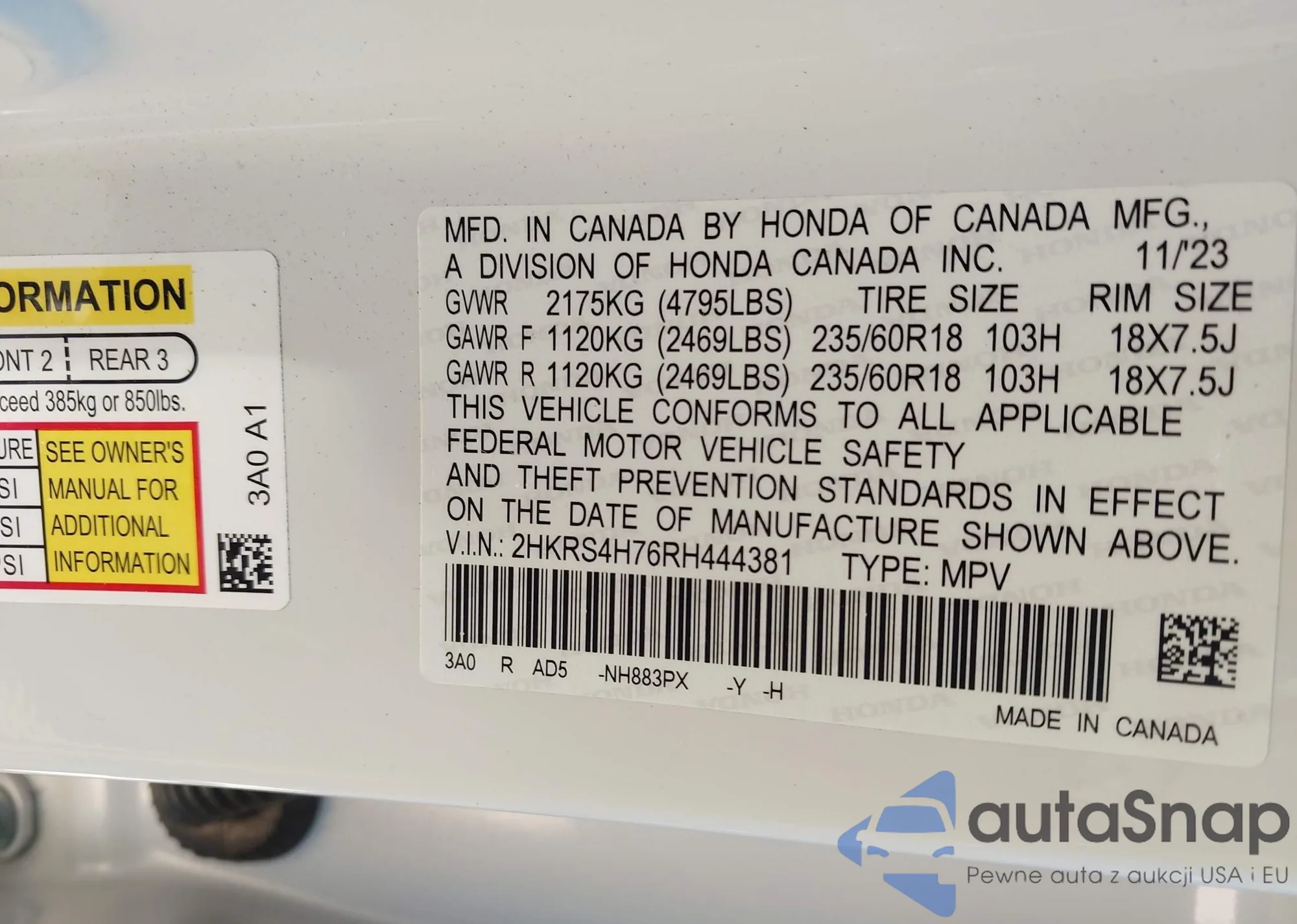 VIN: 2HKRS4H76RH444381