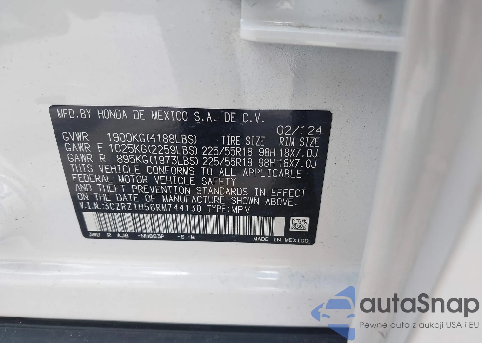 Honda HR-V 2024 – Vehicle History (Sold at IAAI)