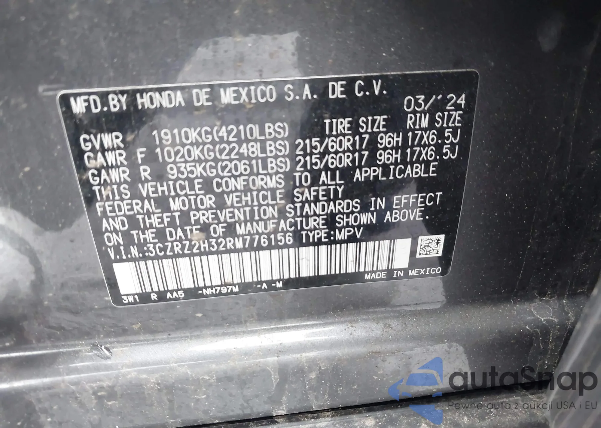 VIN: 3CZRZ2H32RM776156