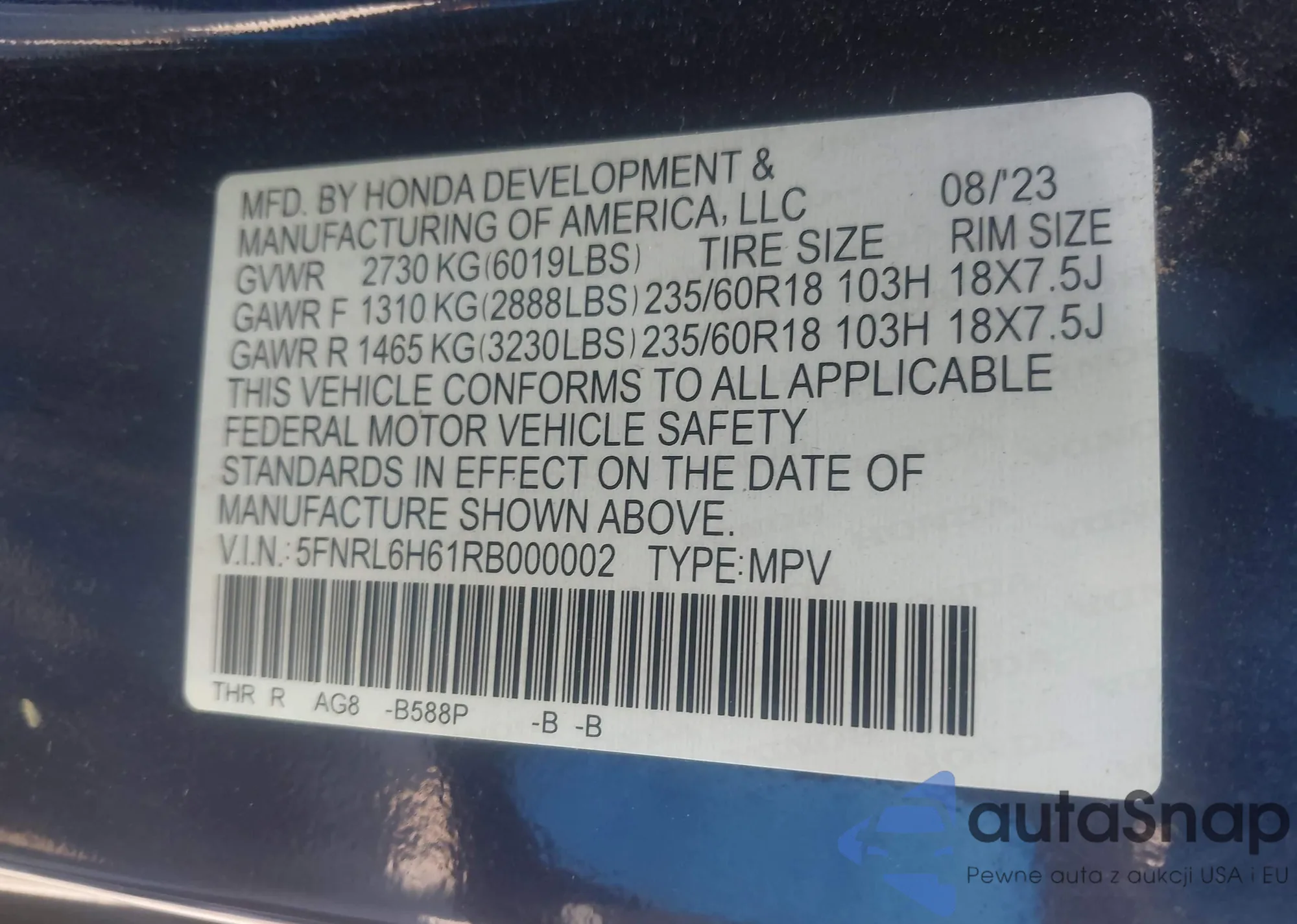 VIN: 5FNRL6H61RB000002
