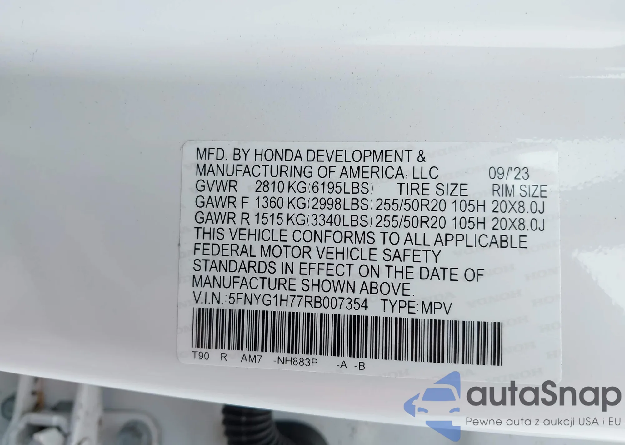 VIN: 5FNYG1H77RB007354