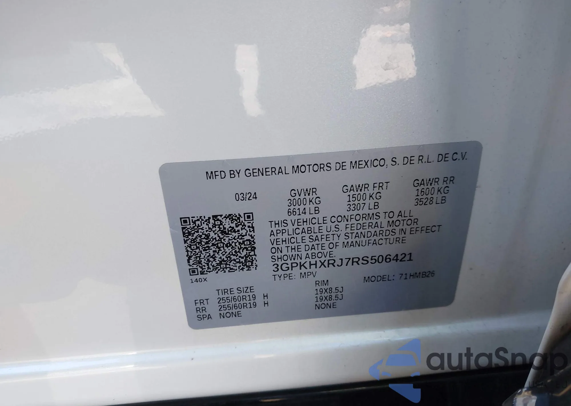 • VIN: 3GPKHXRJ7RS506421