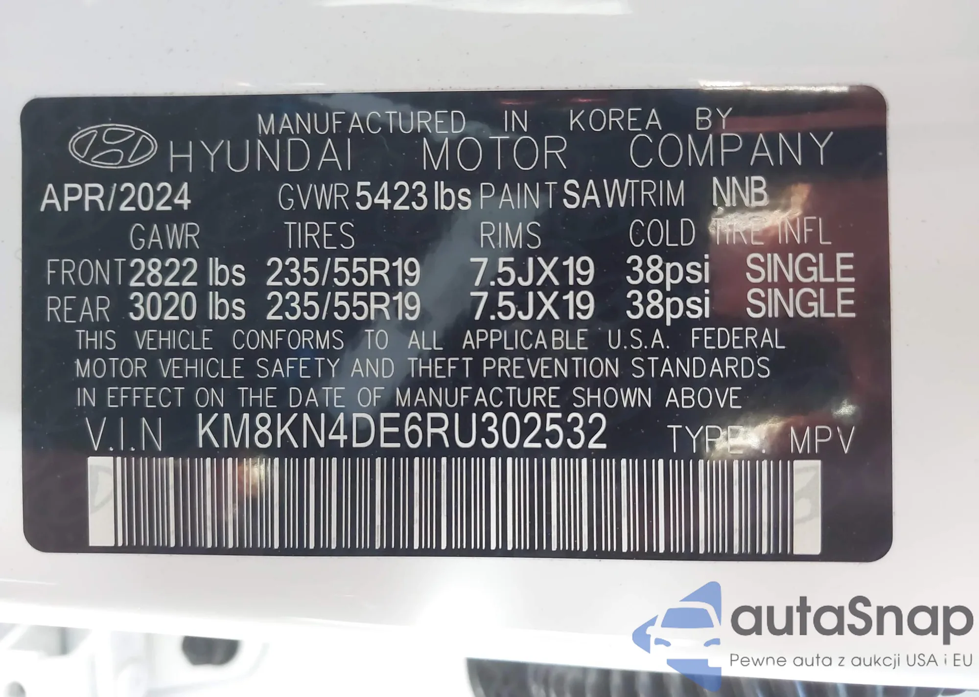 The car Hyundai IONIQ 5 2024 (VIN KM8KN4DE6RU302532) has not been auctioned before. The documents are clean, and the mileage matches or is below the market average. Sold by an insurance company – we recommend purchase. Delivery to the port will take approx. 6–8 weeks.