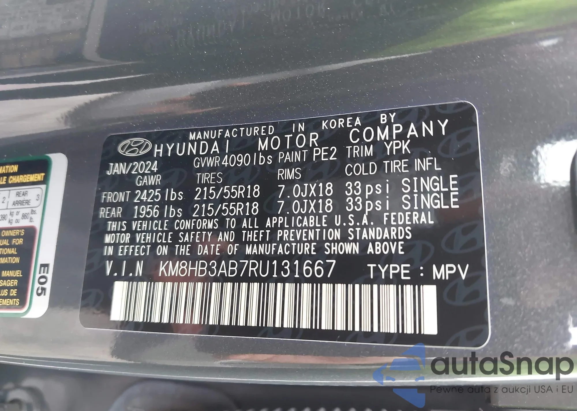 • VIN: KM8HB3AB7RU131667