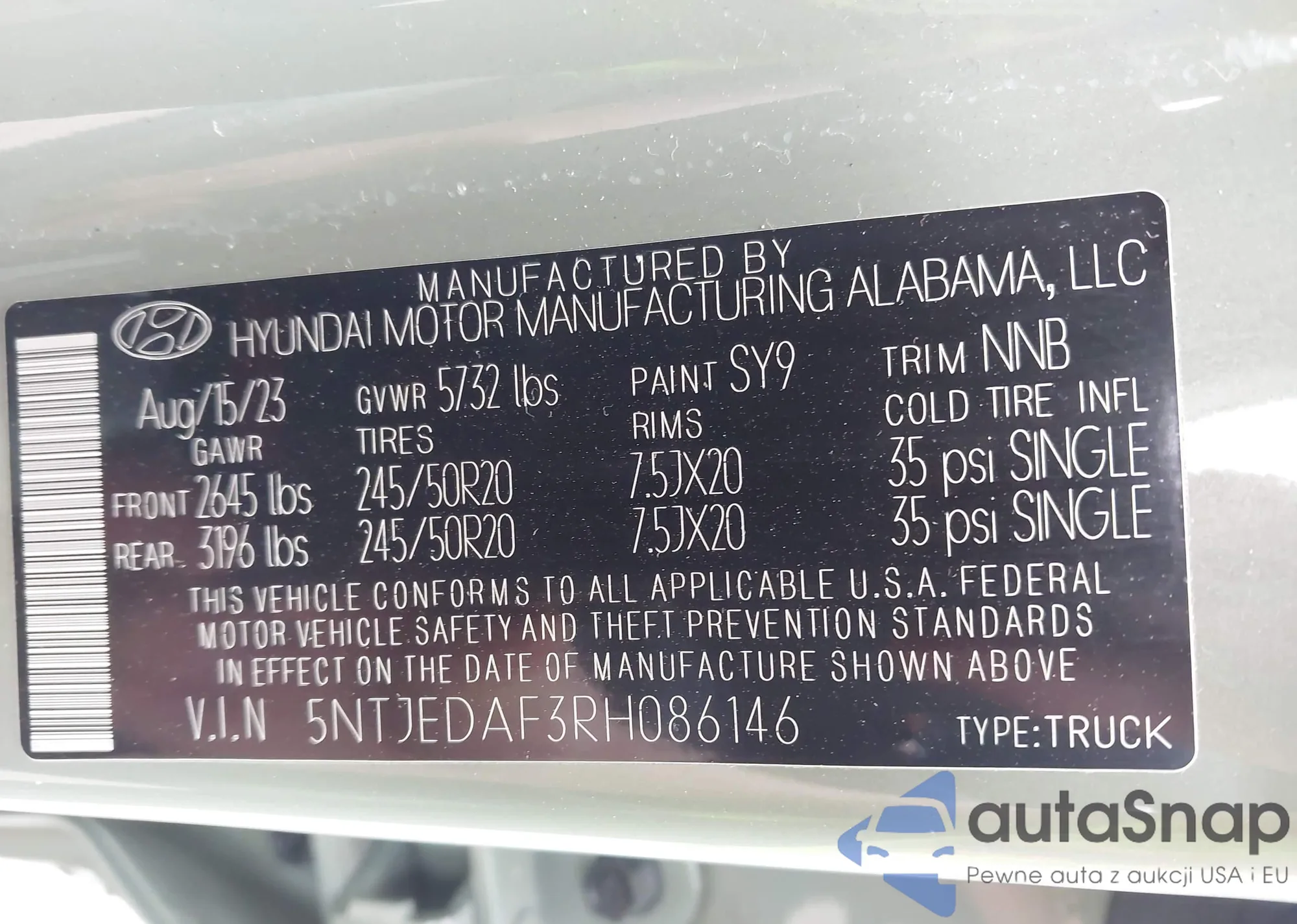 VIN: 5NTJEDAF3RH086146