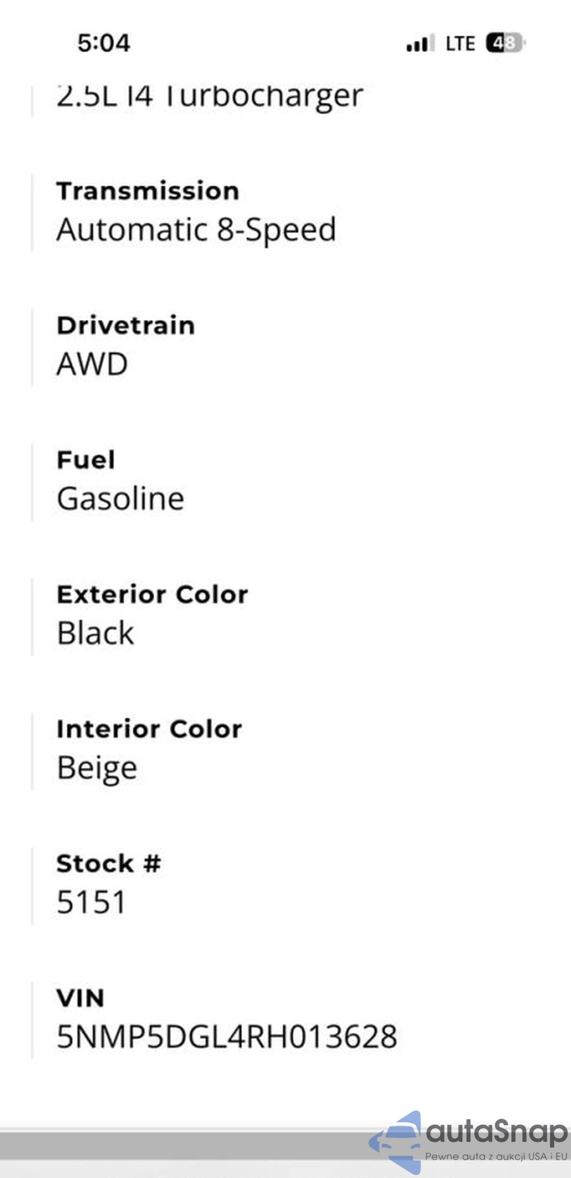 This car has been sold. Check similar offers and order a search service at AutaSnap — average price and transport cost available immediately.