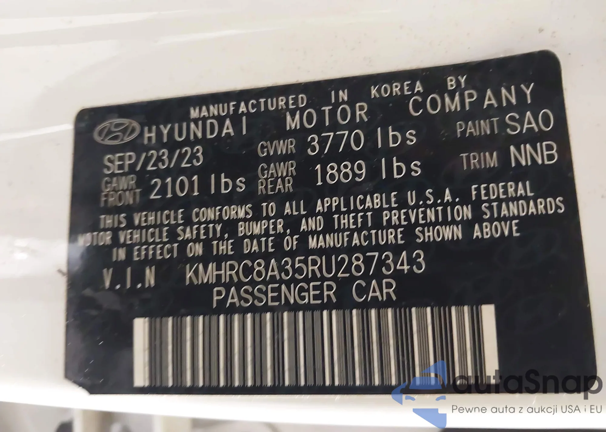The car Hyundai Venue 2024 (VIN KMHRC8A35RU287343) has not been auctioned before. The documents are clean, and the mileage matches or is below the market average. Sold by an insurance company – we recommend purchase. Delivery to the port will take approx. 6–8 weeks.