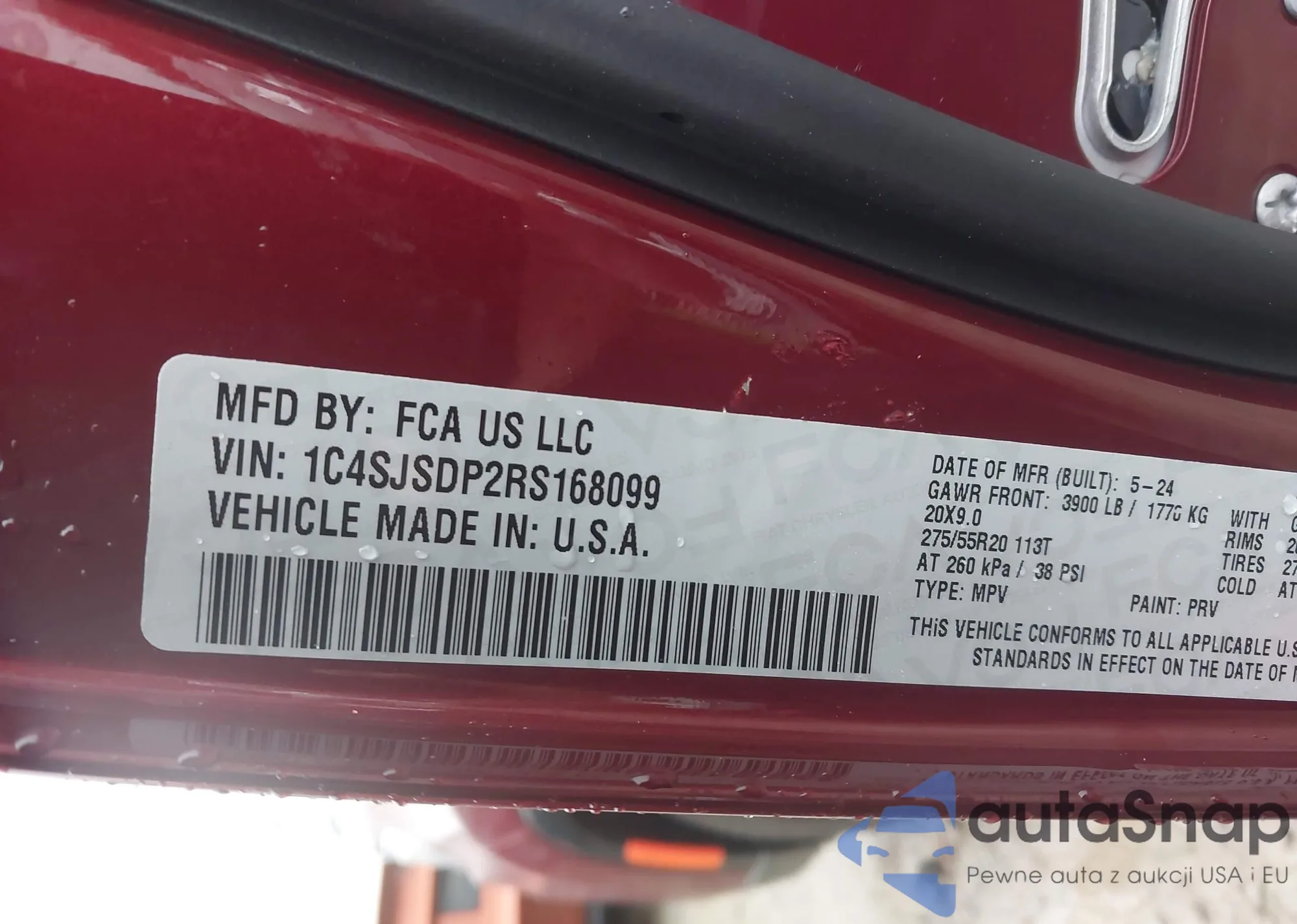 • VIN: 1C4SJSDP2RS168099
