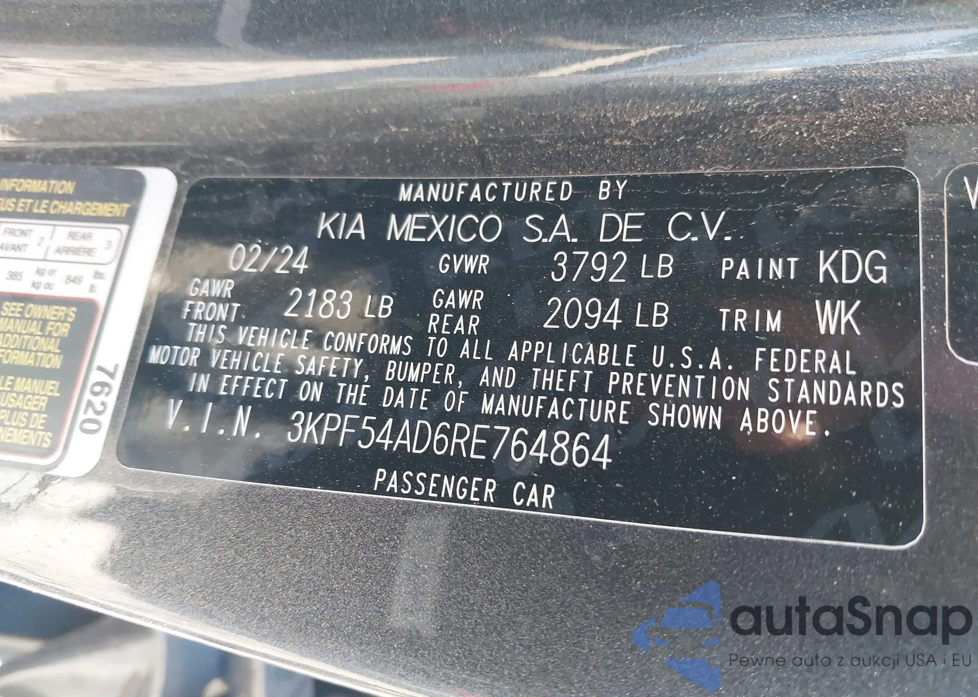 The car Kia Forte 2024 (VIN 3KPF54AD6RE764864) has not been auctioned before. The documents are clean, and the mileage matches or is below the market average. Sold by an insurance company – we recommend purchase. Delivery to the port will take approx. 6–8 weeks.