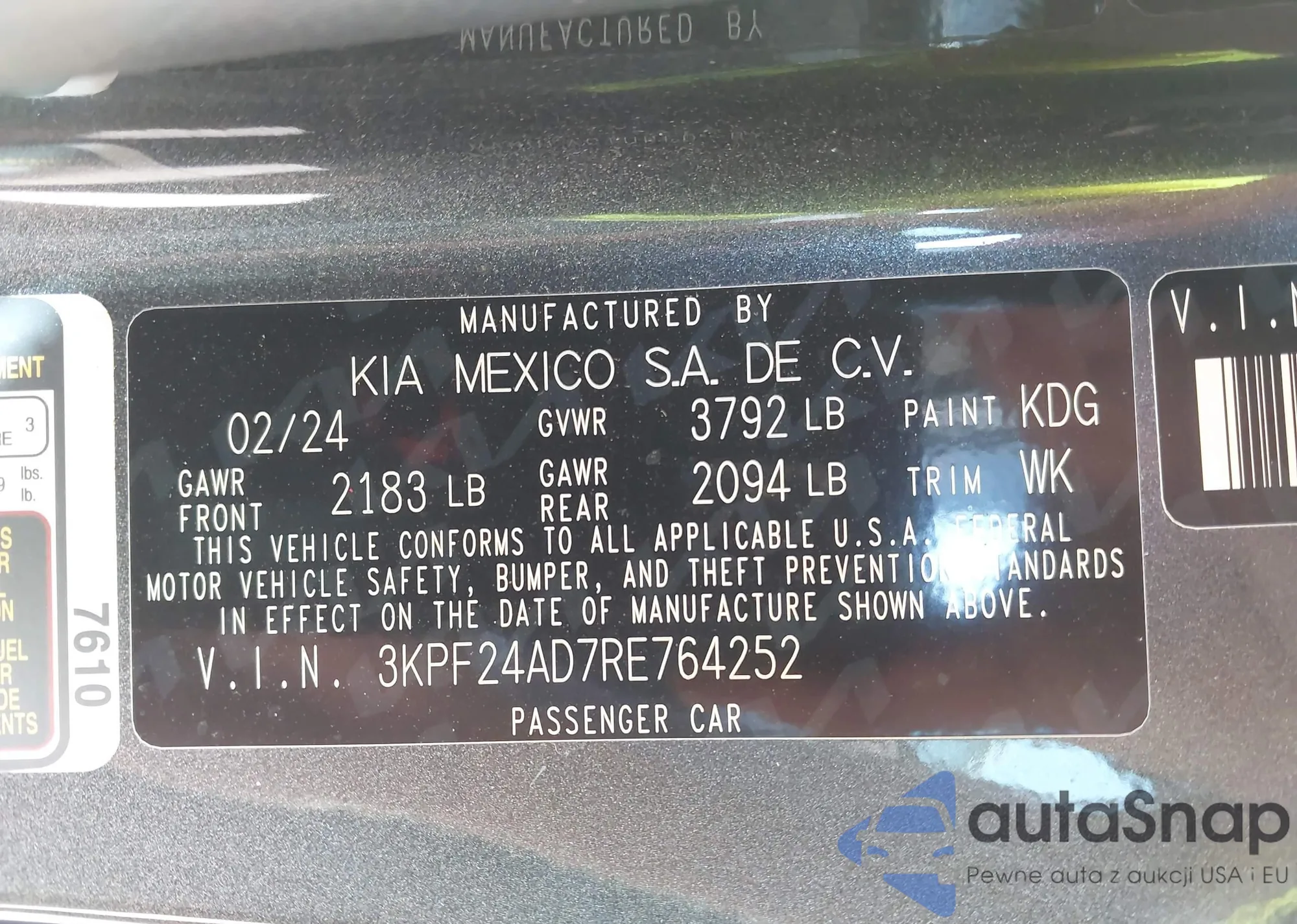 VIN: 3KPF24AD7RE764252