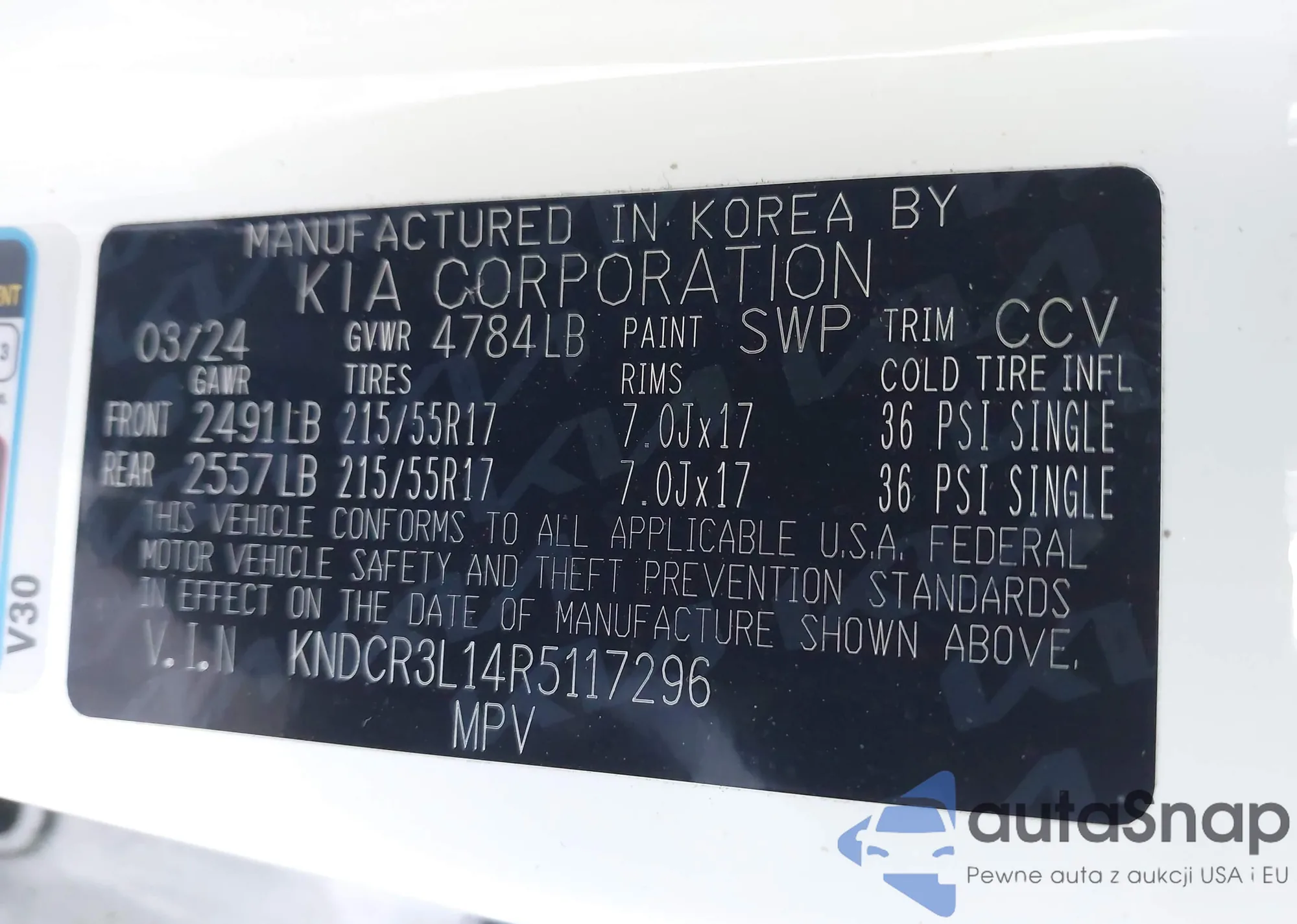 • VIN: KNDCR3L14R5117296