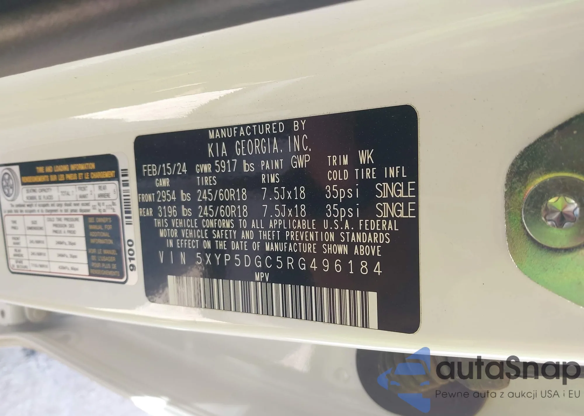 • VIN: 5XYP5DGC5RG496184