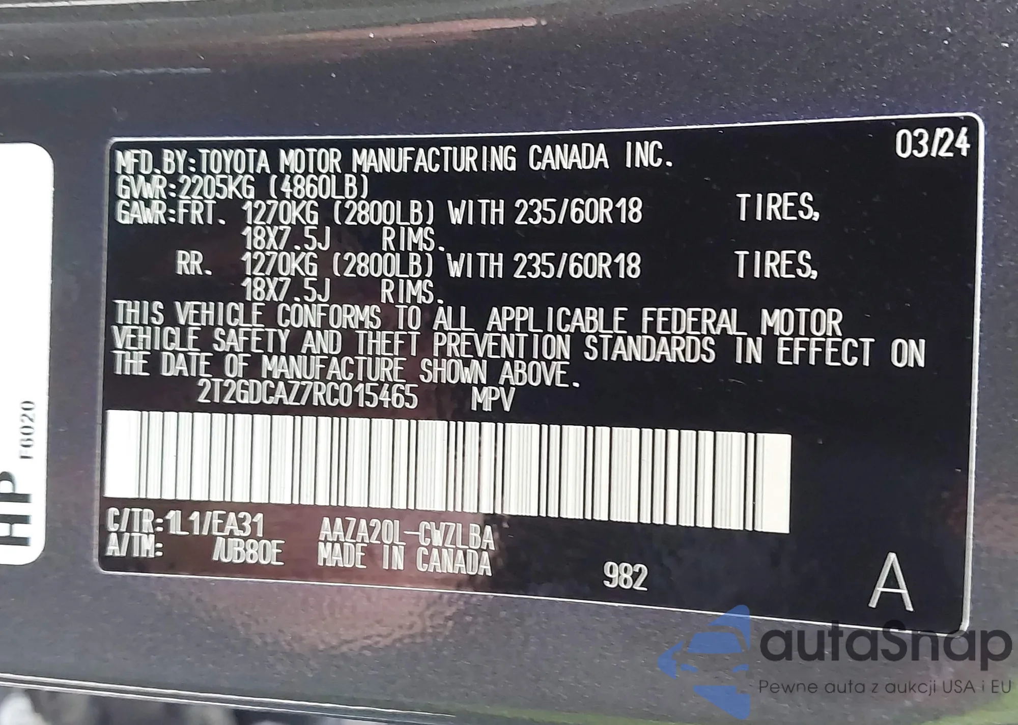 VIN: 2T2GDCAZ7RC015465