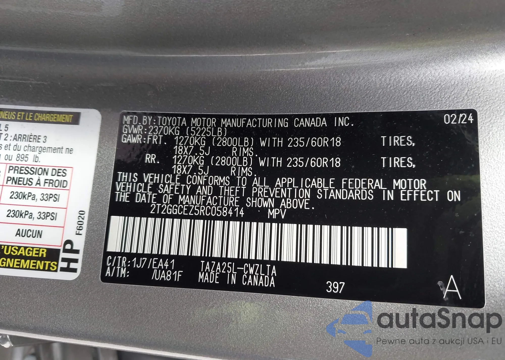 VIN: 2T2GGCEZ5RC058414