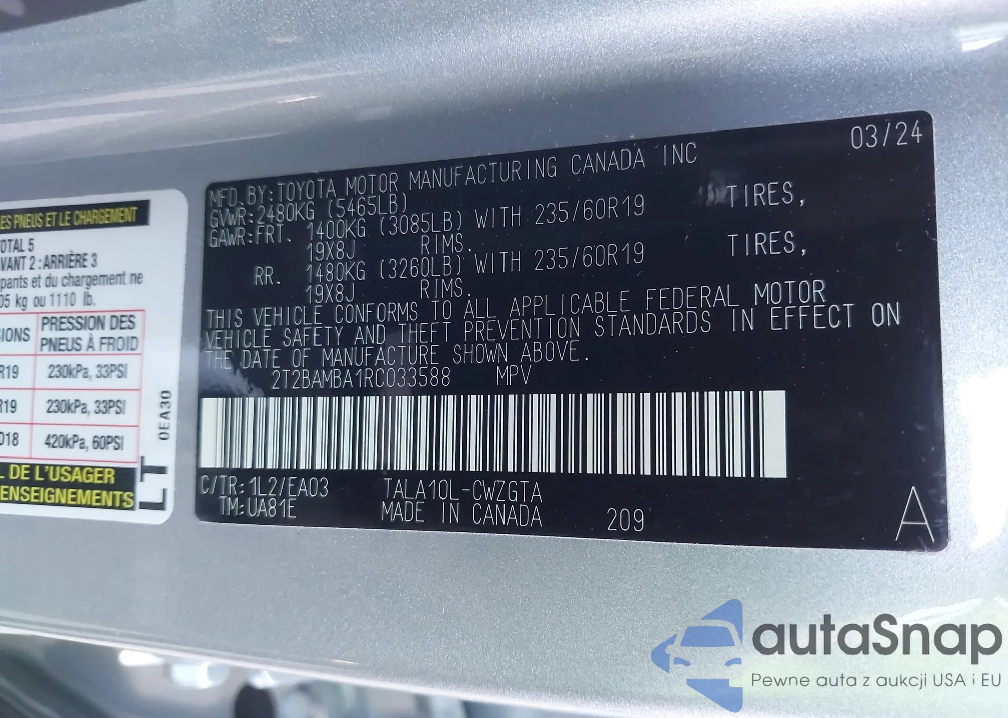 • VIN: 2T2BAMBA1RC033588