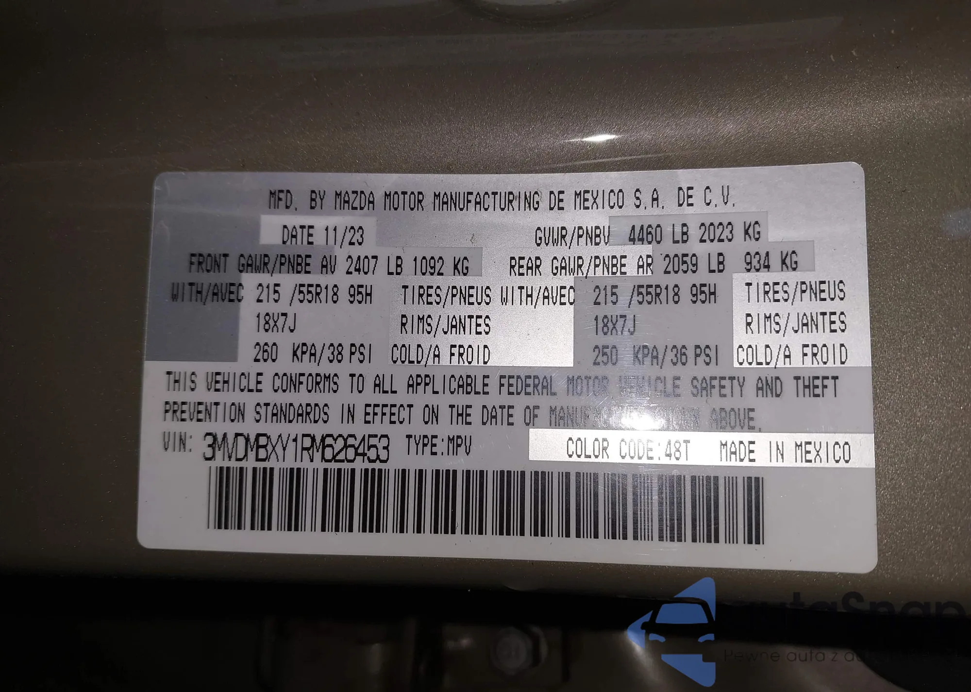 VIN: 3MVDMBXY1RM626453