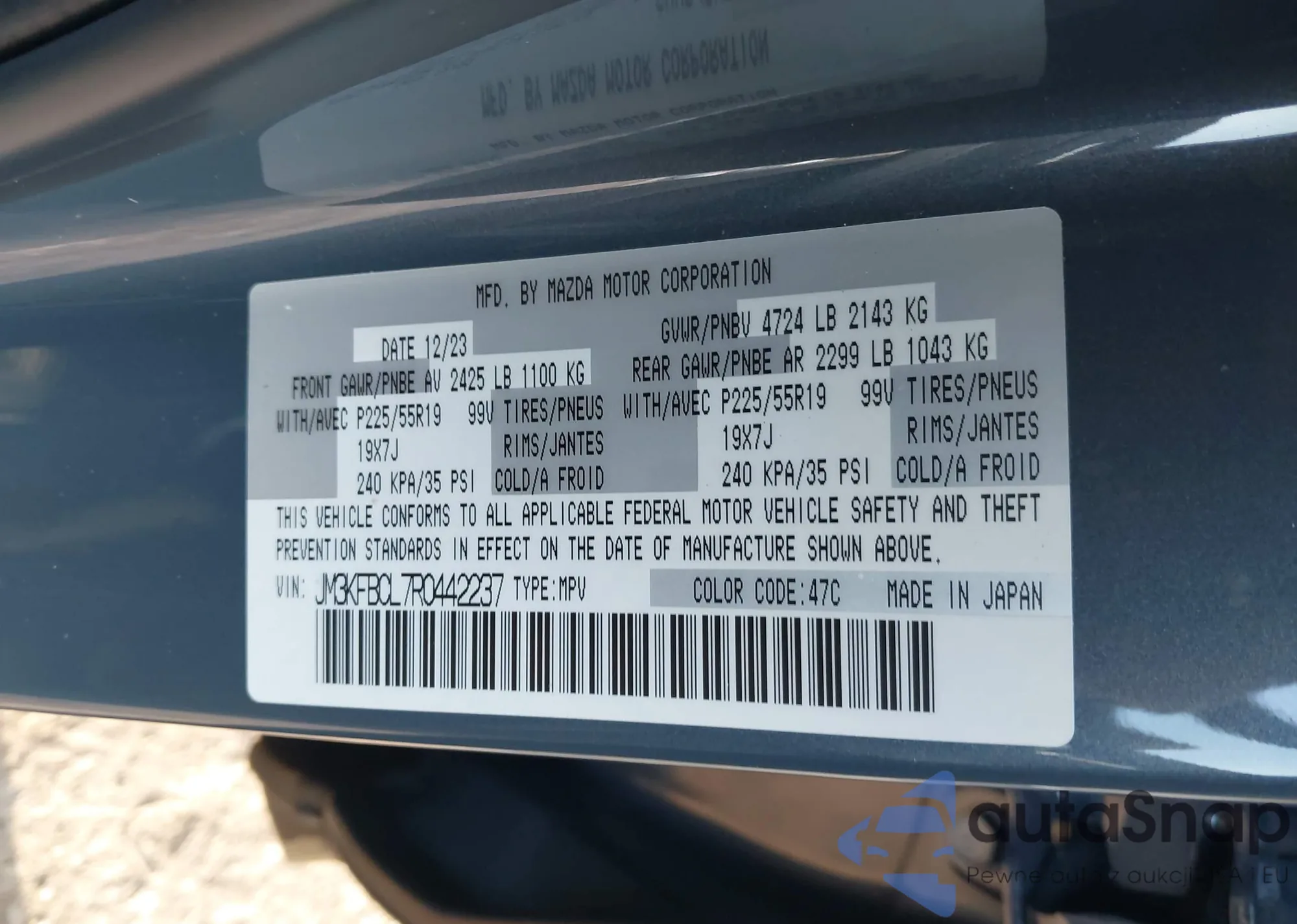 The car Mazda CX-5 2024 (VIN JM3KFBCL7R0442237) has not been auctioned before. The documents are clean, and the mileage matches or is below the market average. Sold by an insurance company – we recommend purchase. Delivery to the port will take approx. 6–8 weeks.