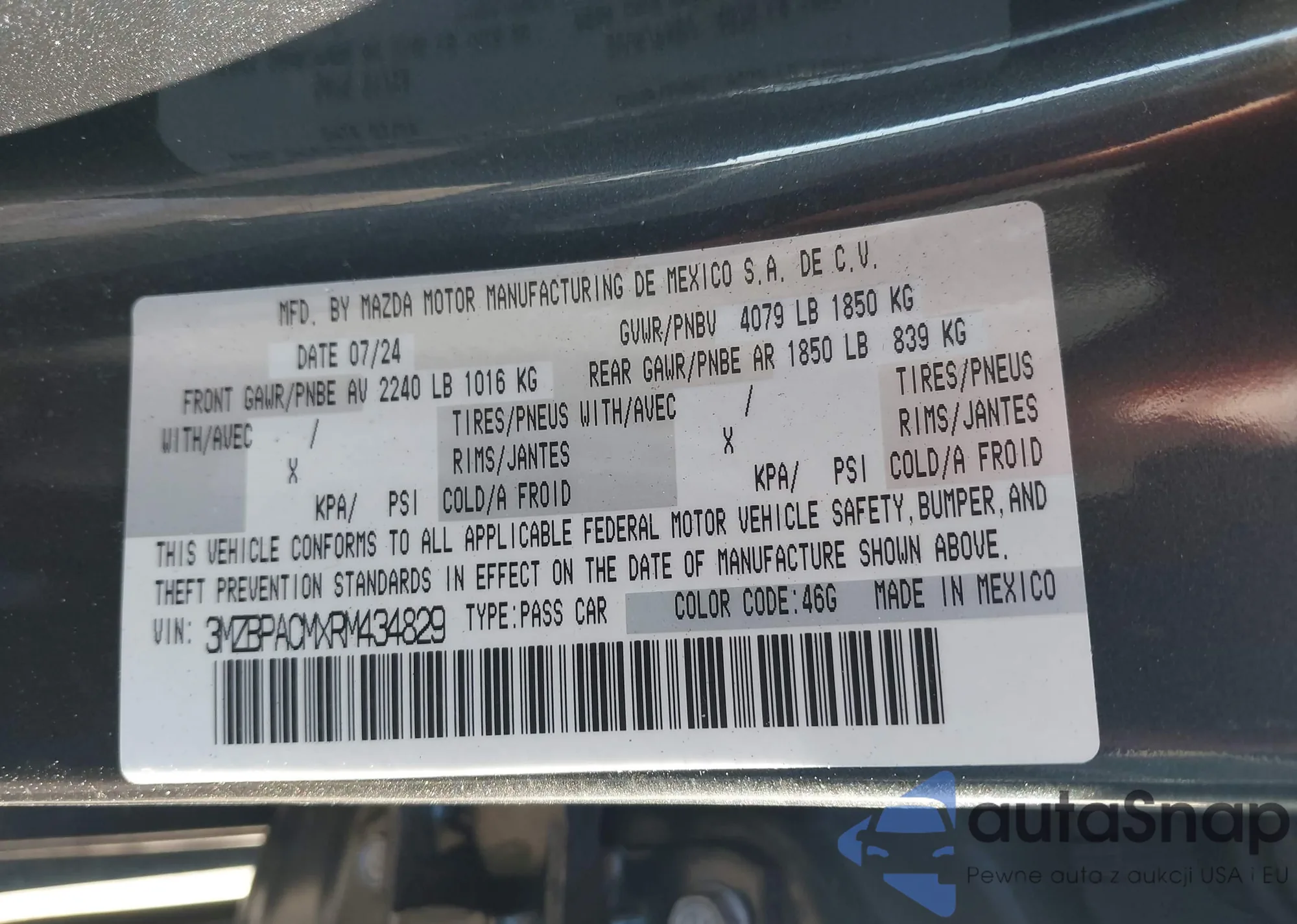 The car Mazda 3 2024 (VIN 3MZBPACMXRM434829) has not been auctioned before. The documents are clean, and the mileage matches or is below the market average. Sold by an insurance company – we recommend purchase. Delivery to the port will take approx. 6–8 weeks.