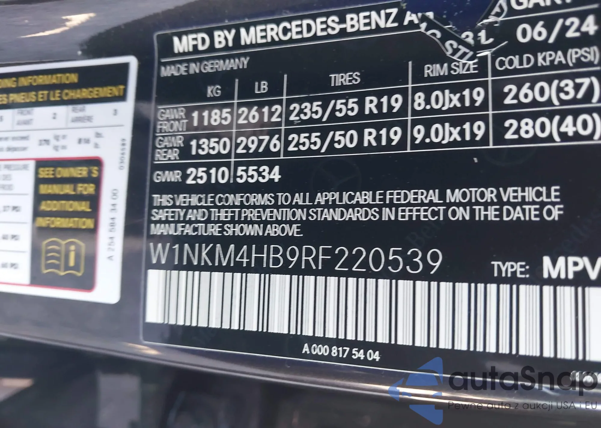 VIN: W1NKM4HB9RF220539