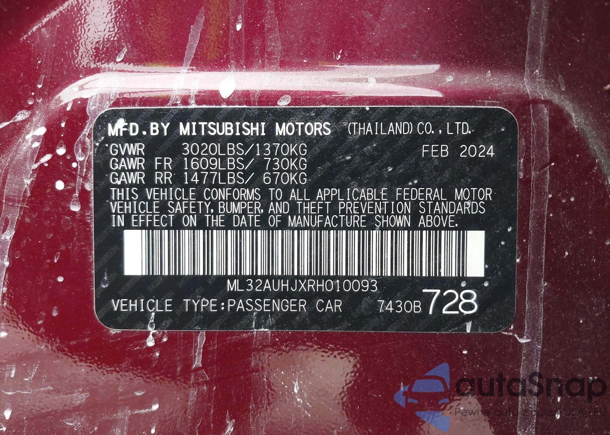 The car Mitsubishi Mirage 2024 (VIN ML32AUHJXRH010093) has already been auctioned 1 times and/or is sold by an unverified seller. We recommend checking the Carfax report and confirming registration possibilities before purchase.