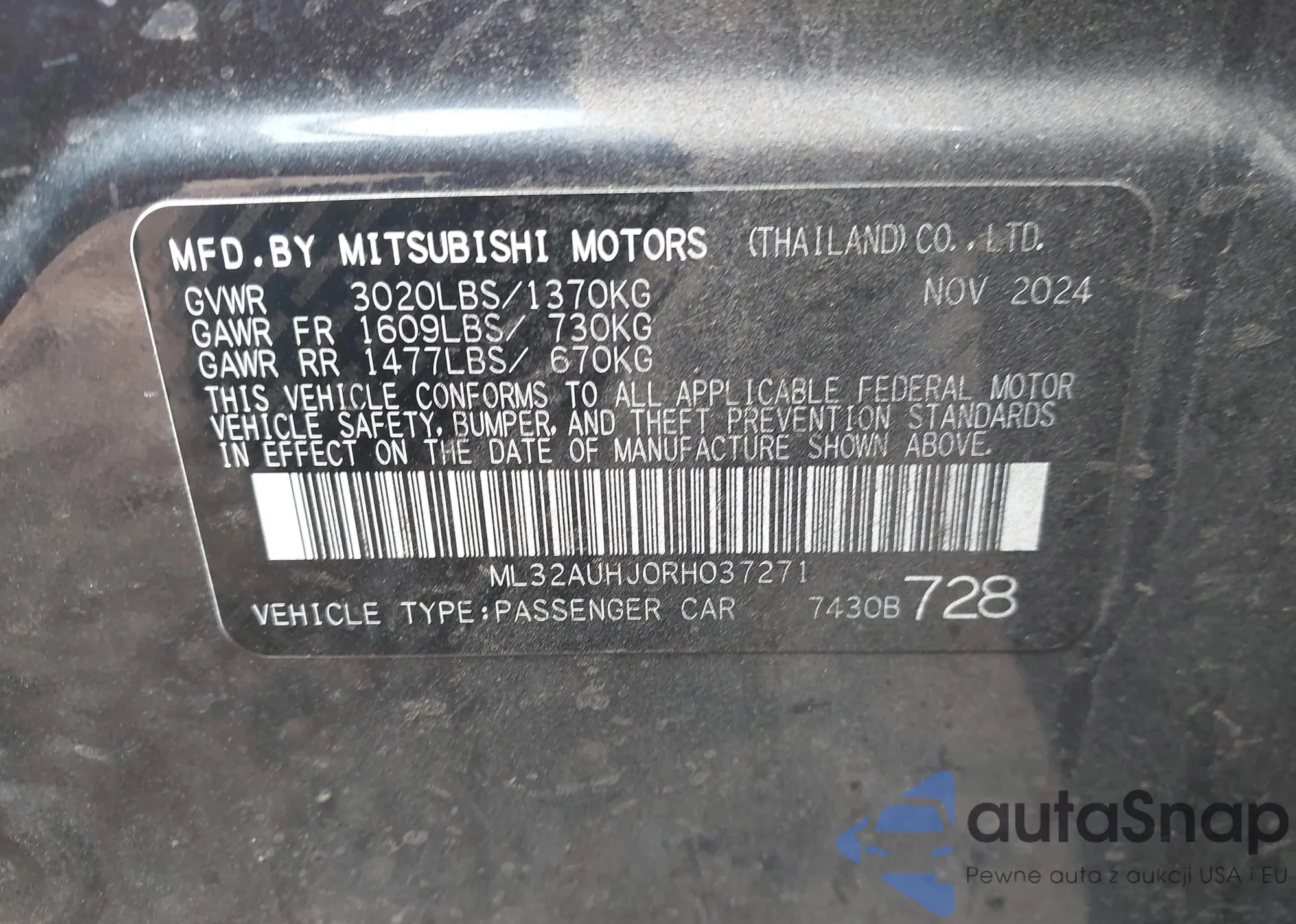 The car Mitsubishi Mirage 2024 (VIN ML32AUHJ0RH037271) is sold by an unverified seller. We recommend checking the Carfax report and confirming registration possibilities before purchase.