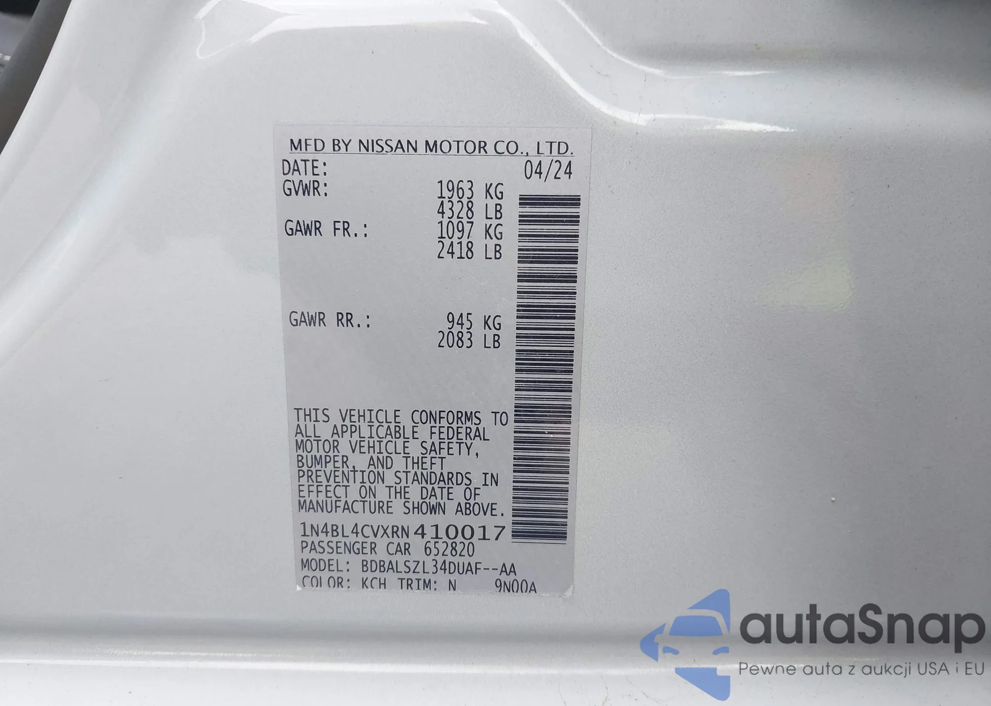 VIN: 1N4BL4CVXRN410017