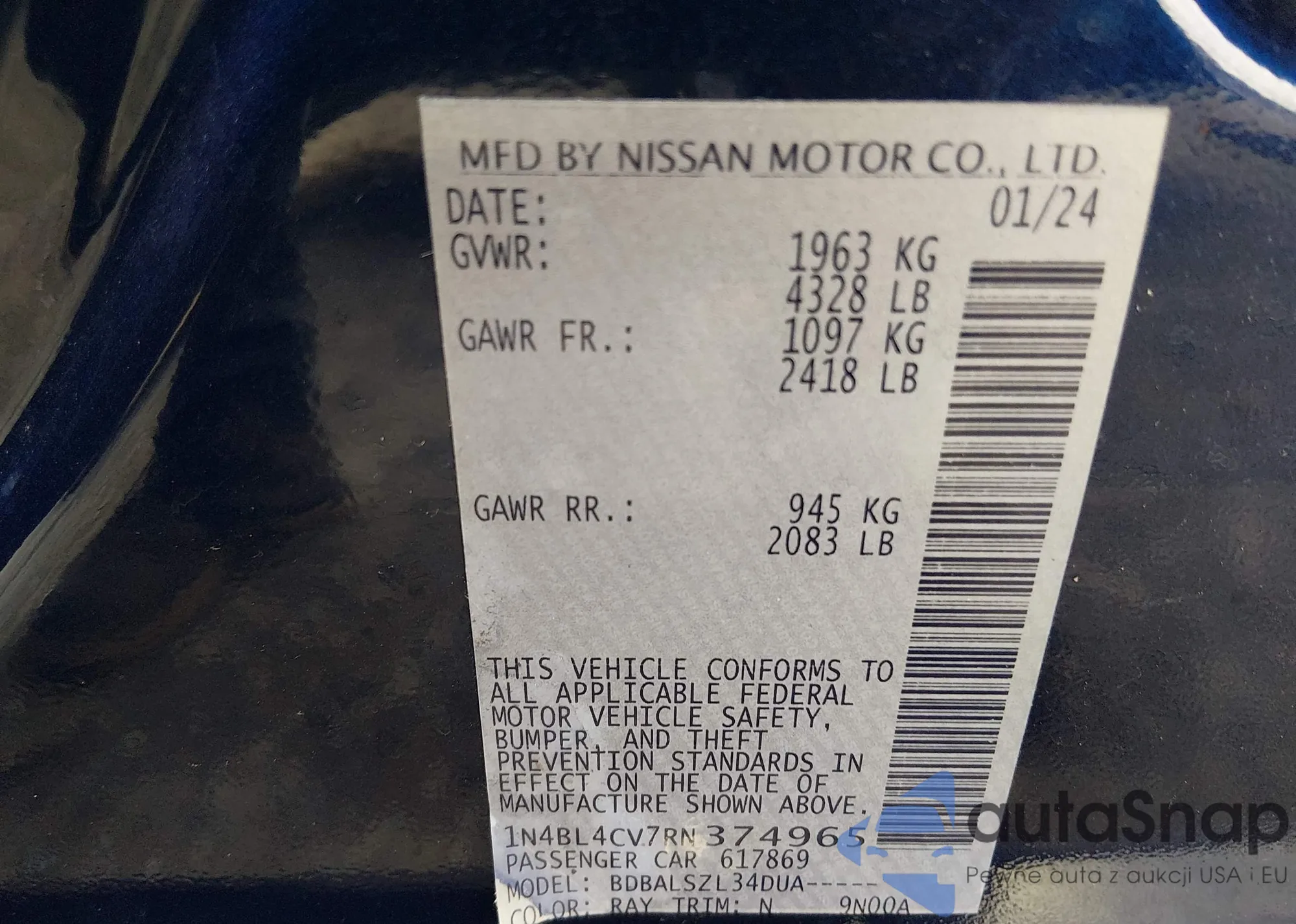 • VIN: 1N4BL4CV7RN374965
