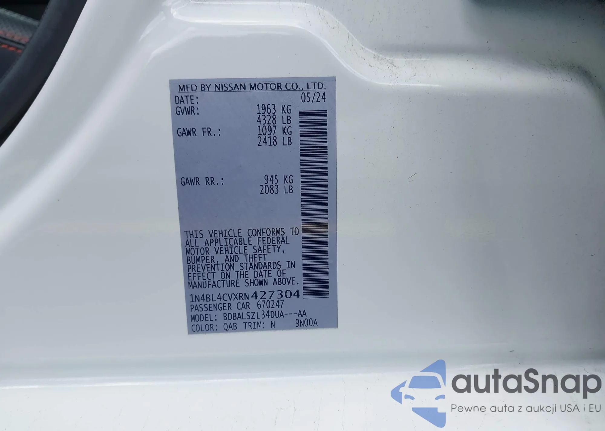 VIN: 1N4BL4CVXRN427304