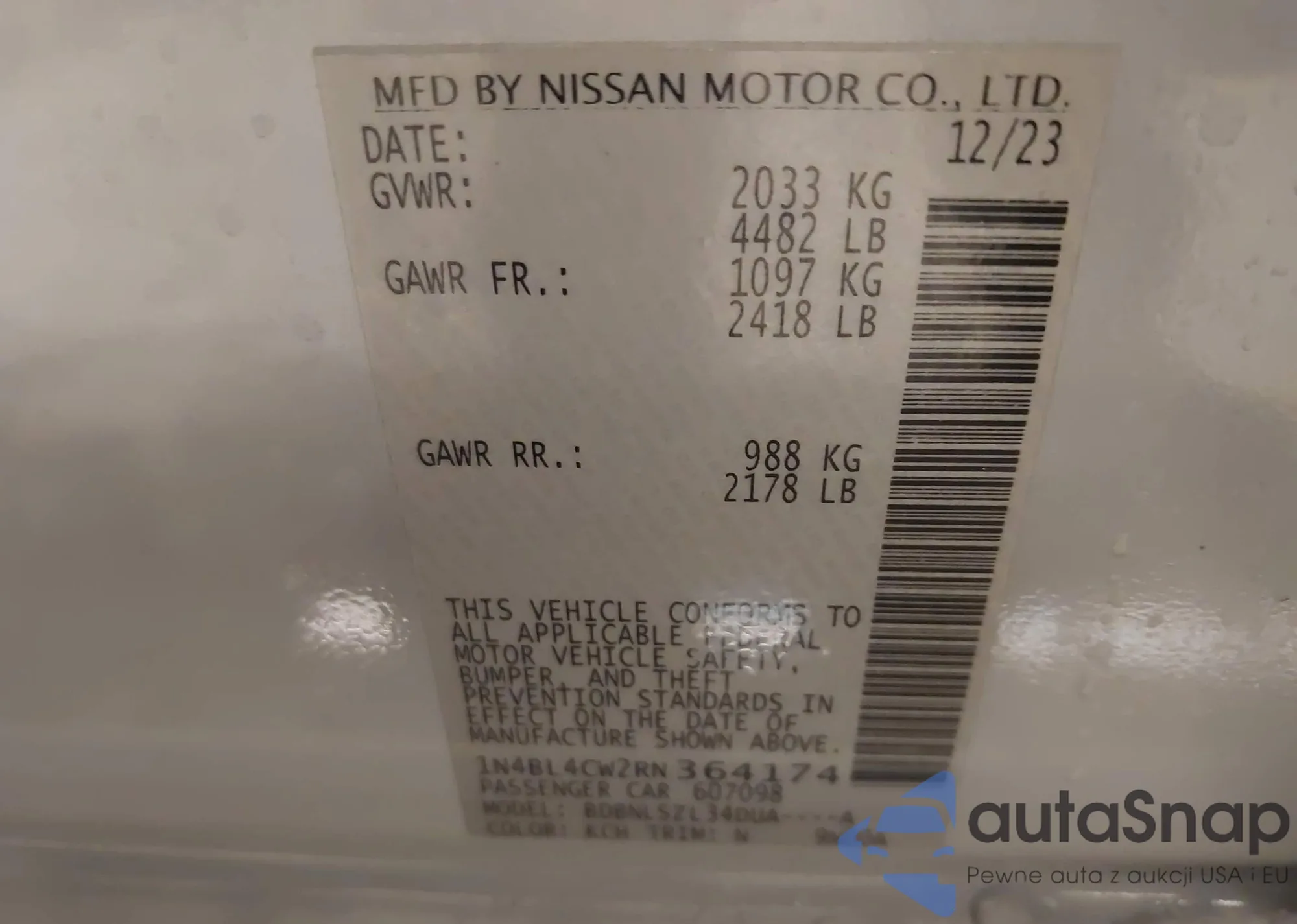 VIN: 1N4BL4CW2RN364174