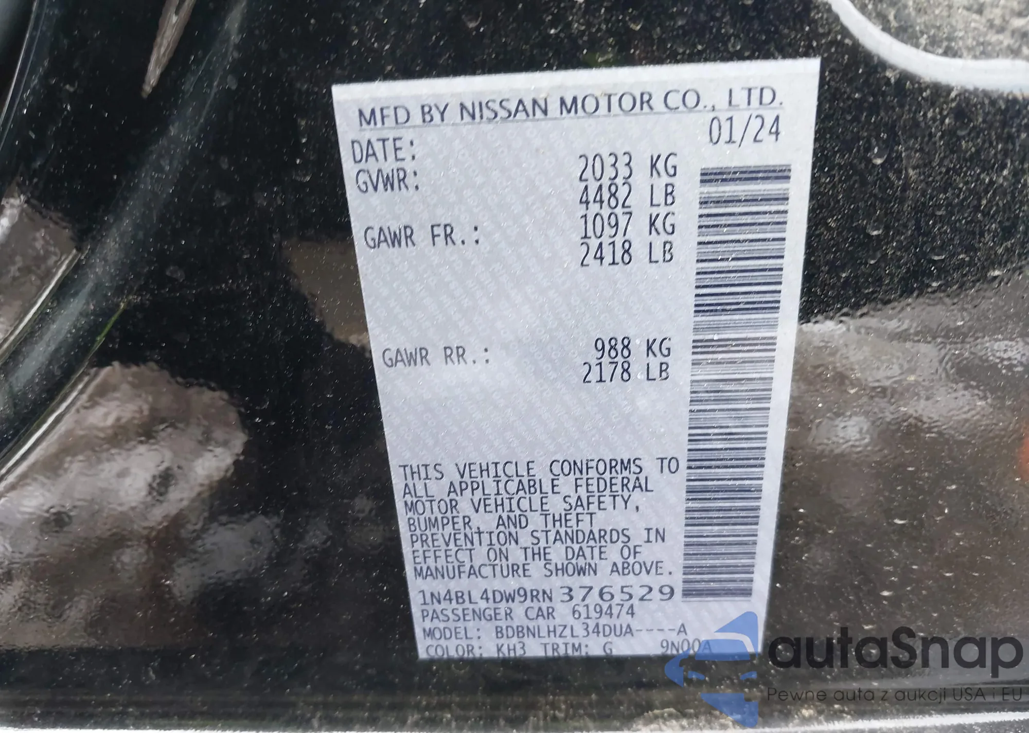 VIN: 1N4BL4DW9RN376529