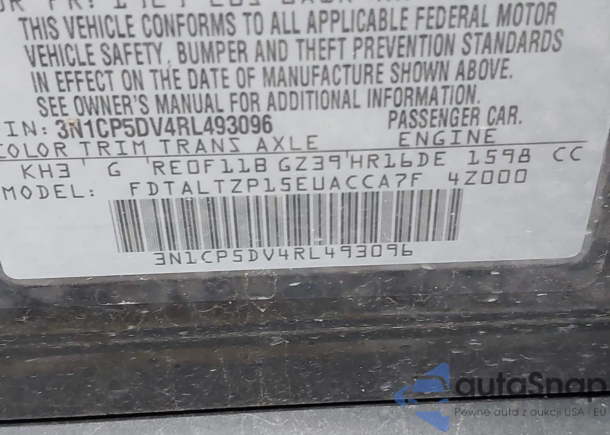 VIN: 3N1CP5DV4RL493096