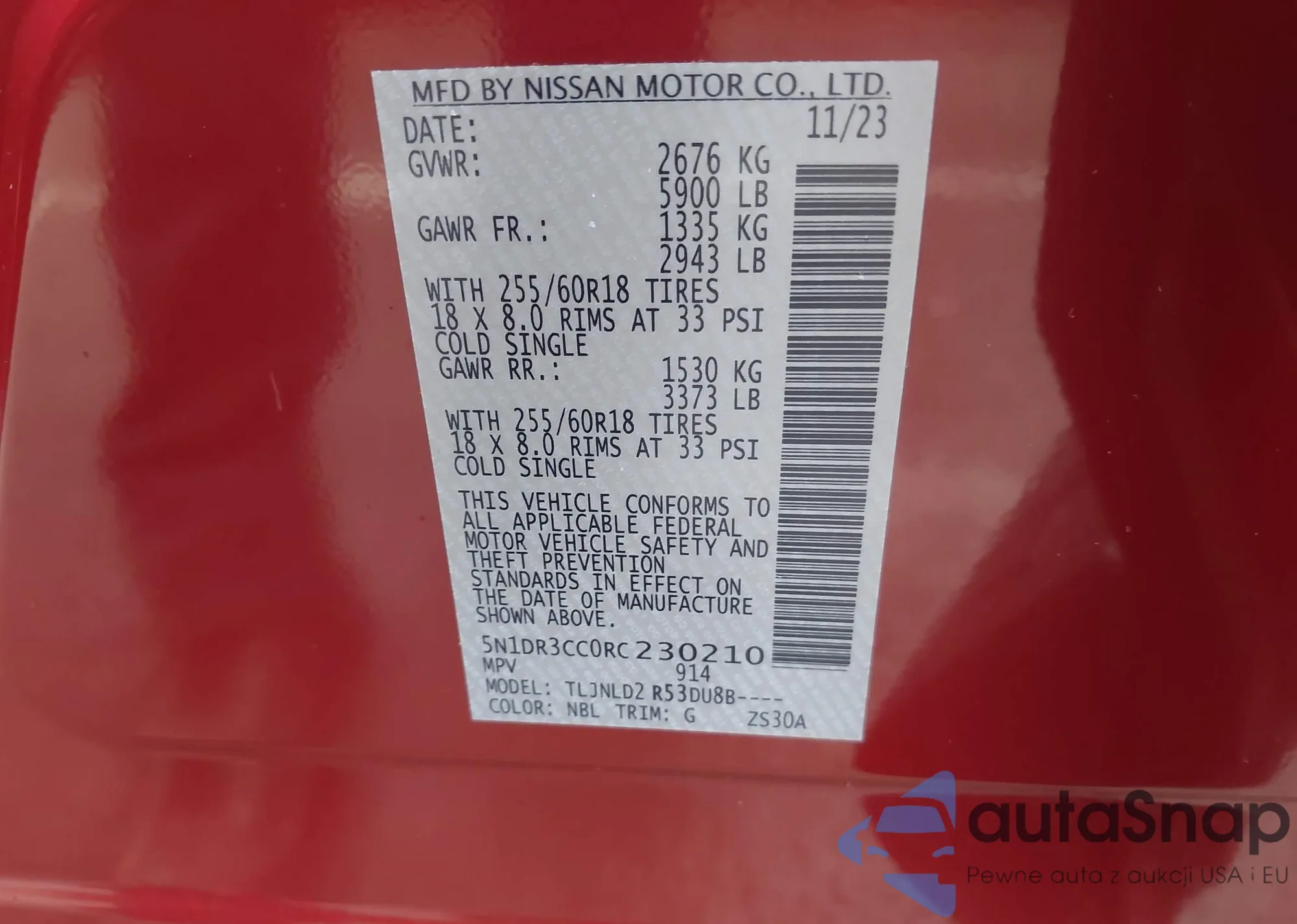 VIN: 5N1DR3CC0RC230210