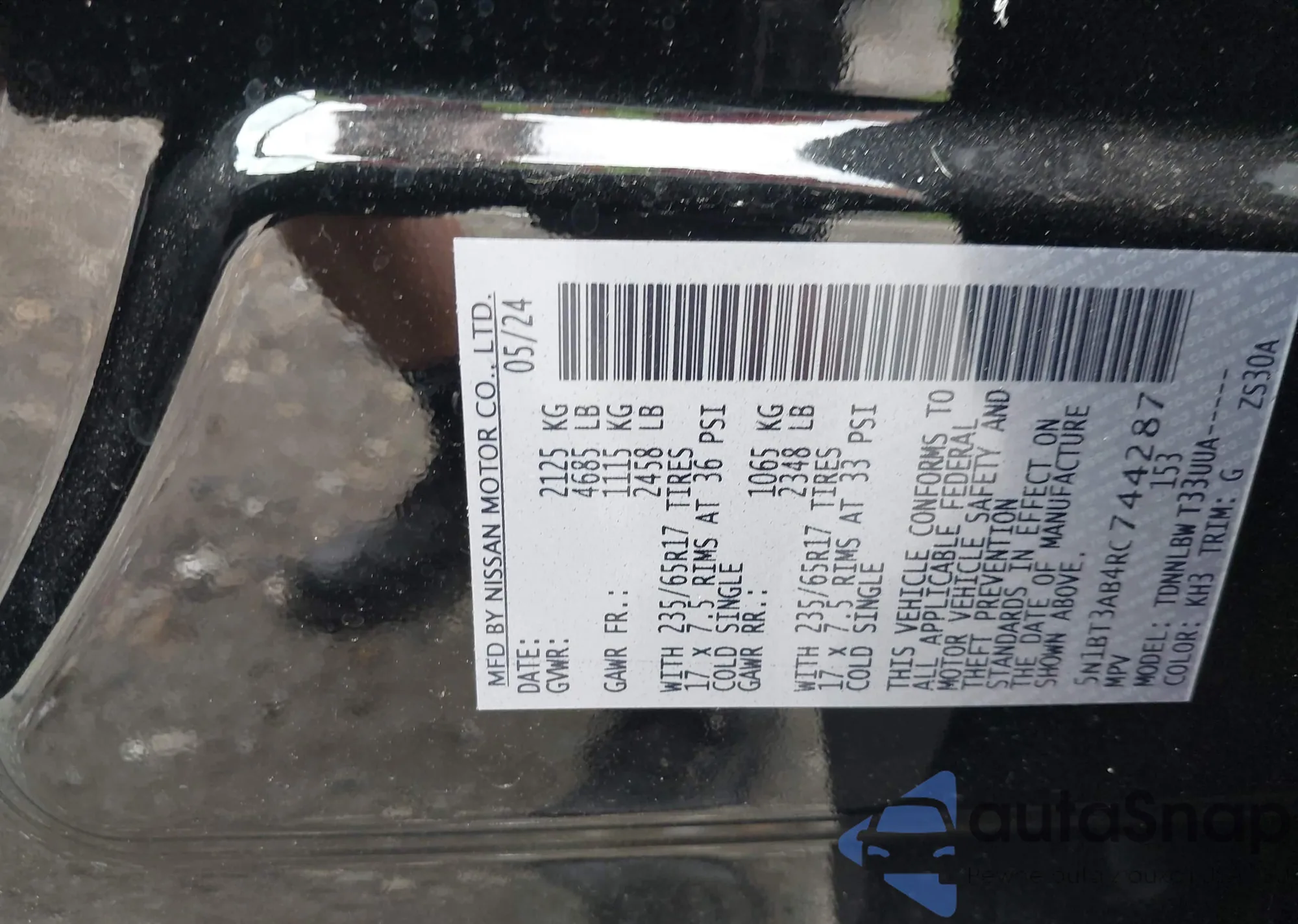 VIN: 5N1BT3AB4RC744287