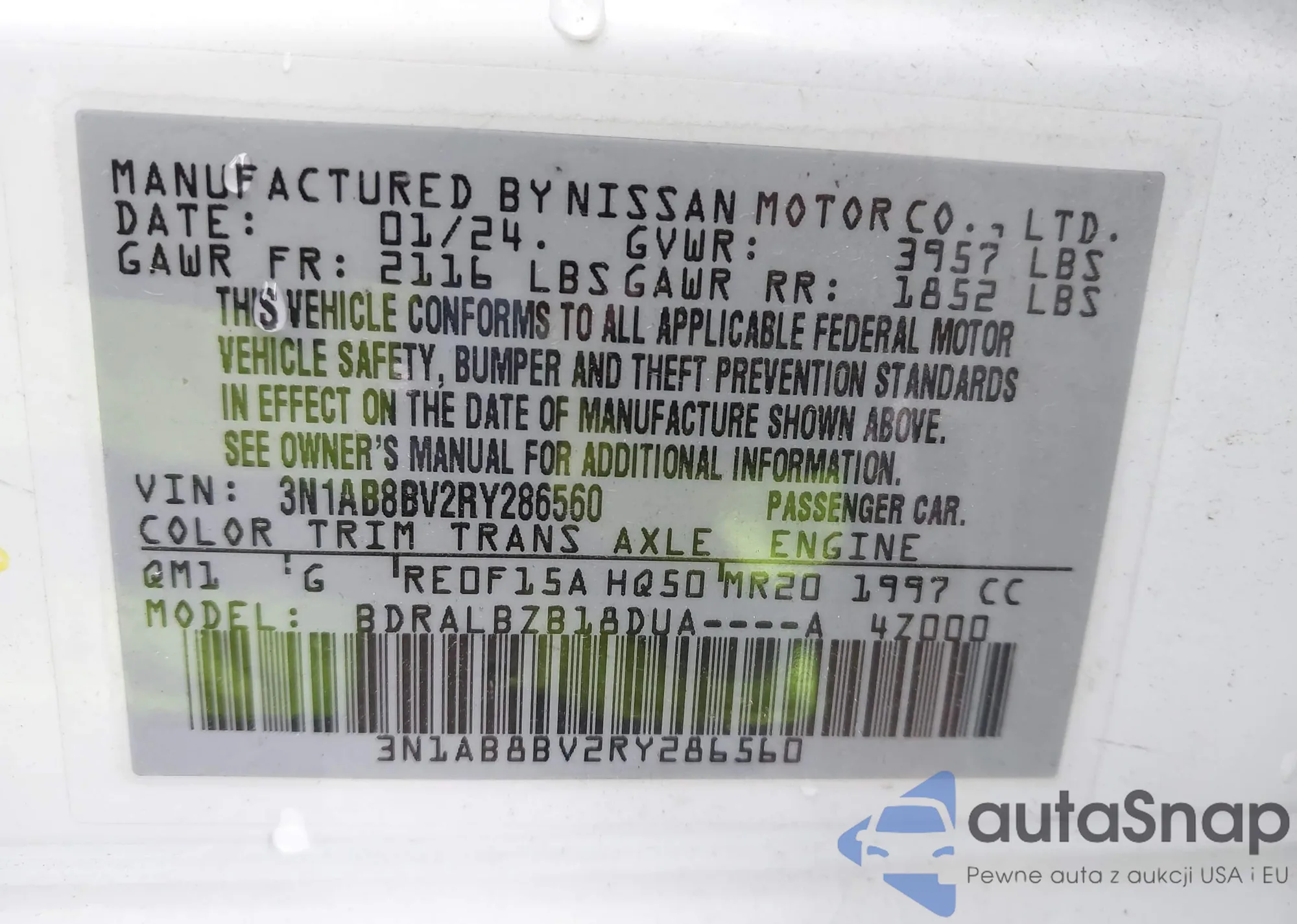 VIN: 3N1AB8BV2RY286560
