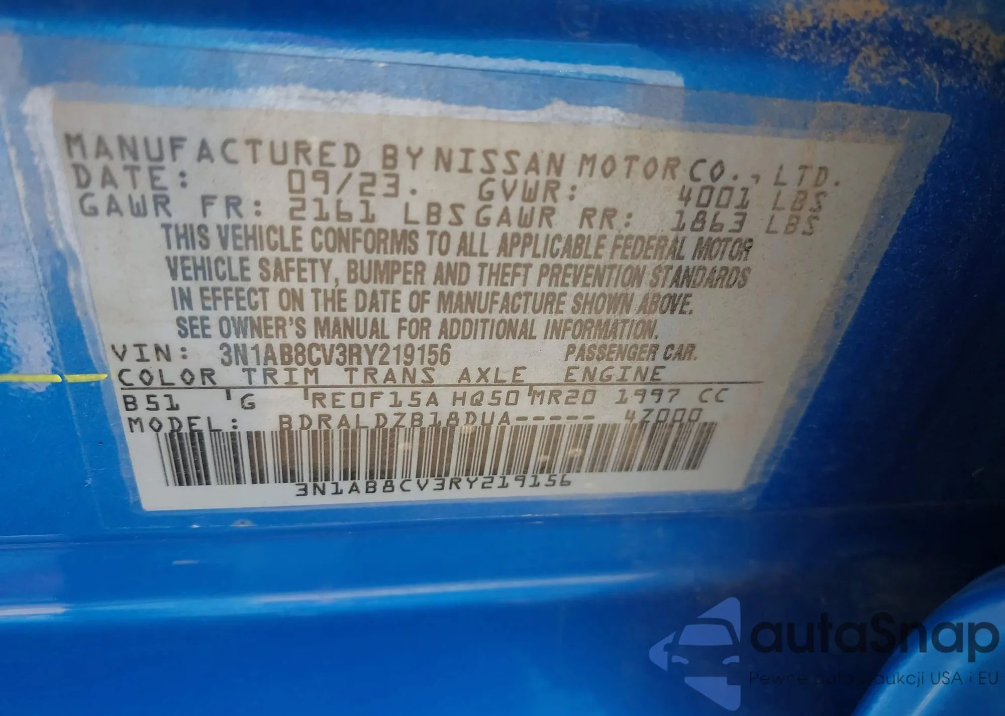 VIN: 3N1AB8CV3RY219156
