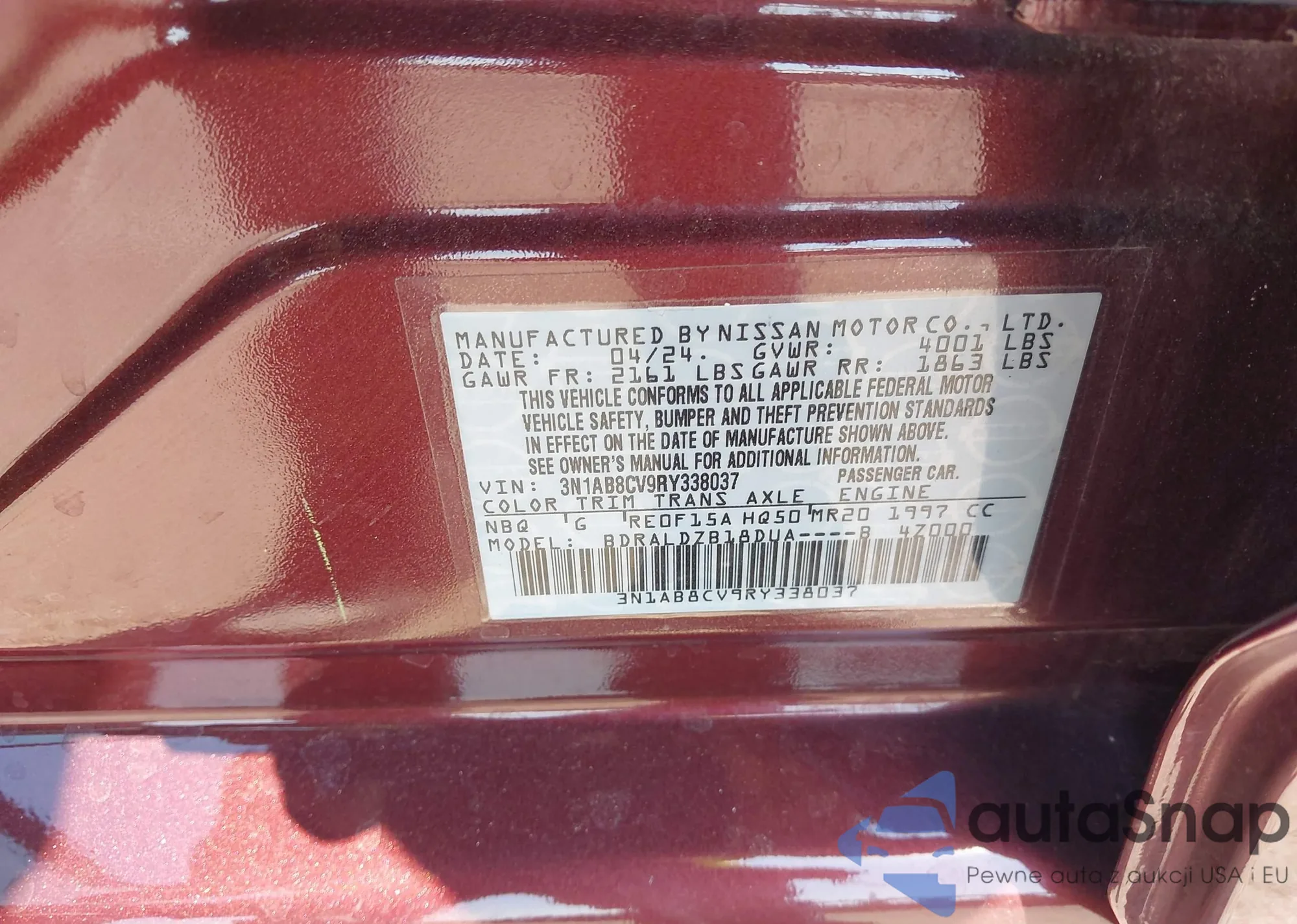 VIN: 3N1AB8CV9RY338037