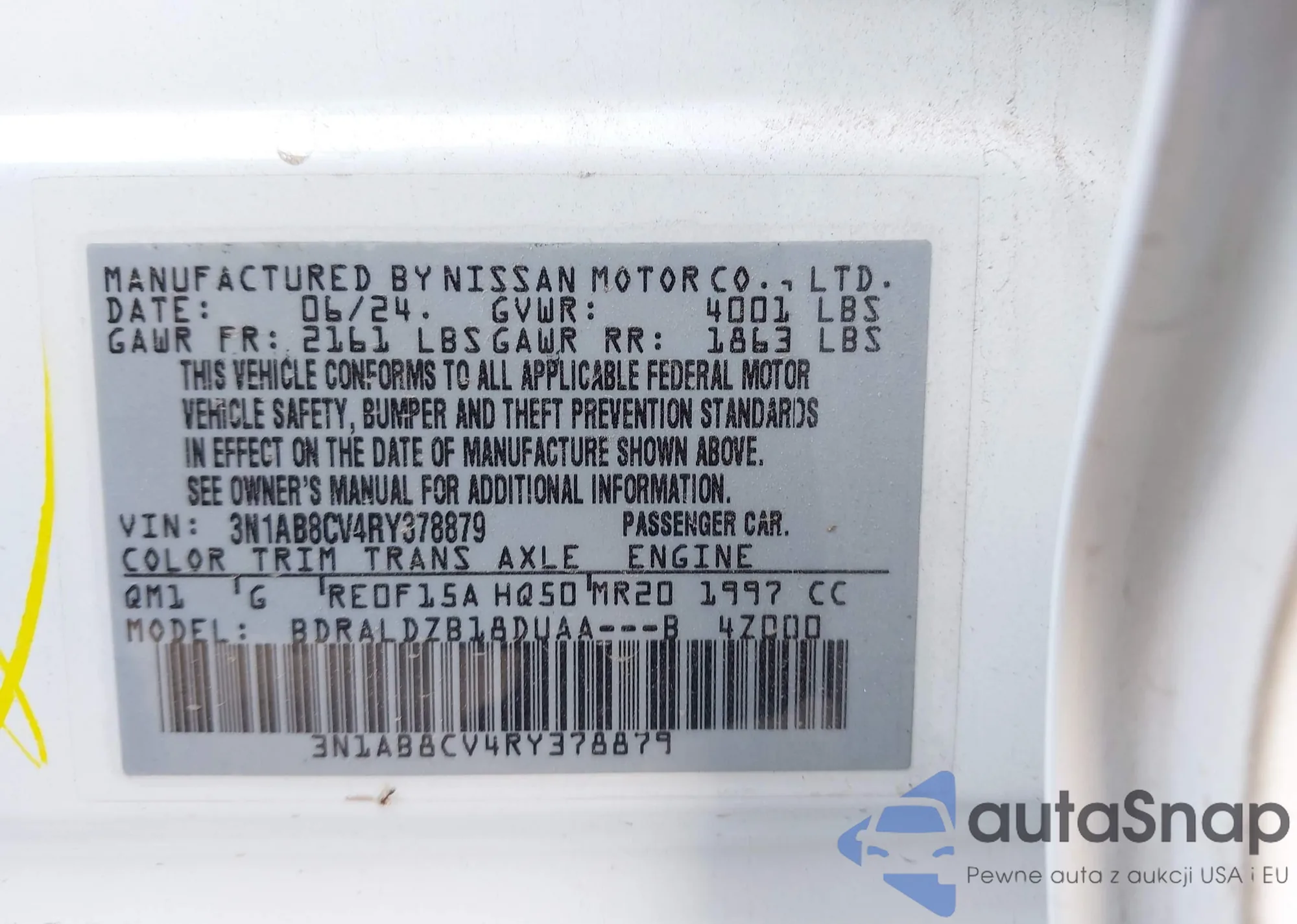 VIN: 3N1AB8CV4RY378879