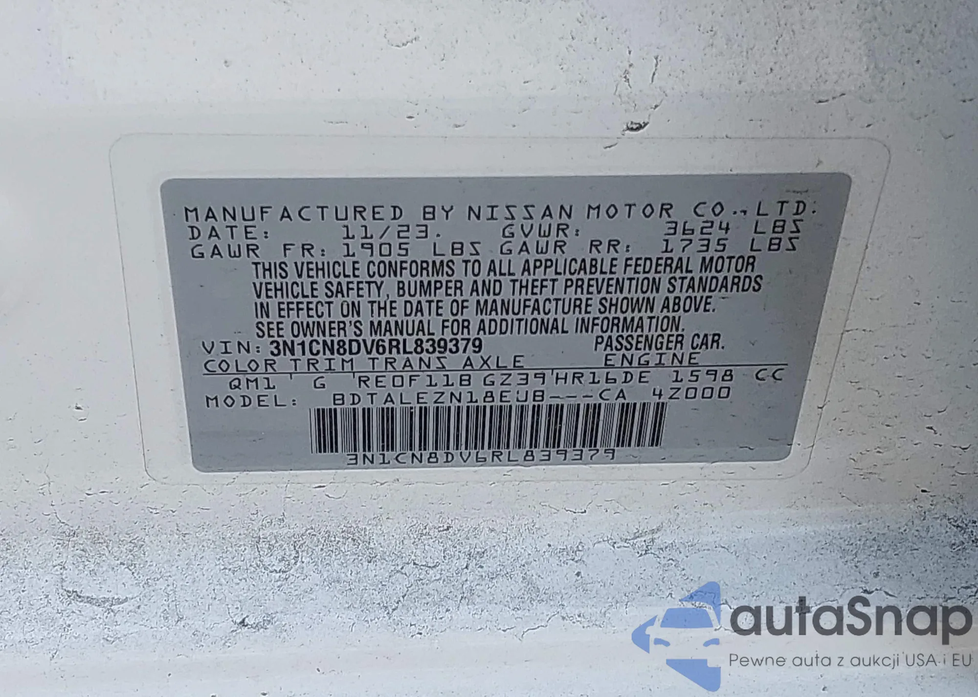 The car Nissan Versa 2024 (VIN 3N1CN8DV6RL839379) has not been auctioned before. The documents are clean, and the mileage matches or is below the market average. Sold by an insurance company – we recommend purchase. Delivery to the port will take approx. 6–8 weeks.